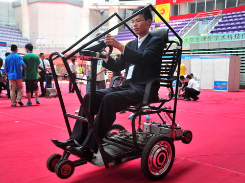 “挑战杯”竞赛分为“挑战杯”大学生课外学术科技作品竞赛(大挑)和“挑战杯”大学生创业计划竞赛(小挑)两类,隔年交替举行。“挑战杯”竞赛是一项具有导向性、示范性和群众性的竞赛活动,被誉为大学生学术科技的“奥林匹克”盛会。多年来,在“崇尚科学、追求真知、勤奋学习、锐意创新、迎接挑战”的“挑战杯”精神指引下,我省已成功举办了十二届省级课外学术科技作品竞赛,成为我省大学生“创新创意的青春舞台,就业创业的金质名片”。我校承办的本次课外学术科技作品竞赛决赛,是我省挑战杯大学生课外学术科技作品竞赛首次采用现场展示和现场问辩等环节。开幕式结束后,参会的各位领导、来宾参观了本届挑战杯决赛作品。(摄影:刘畅)