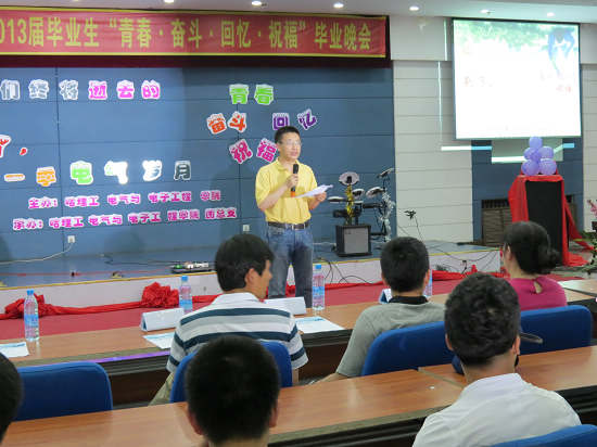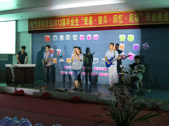 出席晚会的嘉宾有电气学院院长李忠华老师、电气学院副院长周美兰老师、电气学院党委副书记兼副院长杨芳老师、以及电气学院辅导员张宏亮老师、周广老师等。在电气学院院长李忠华老师精彩的致辞后,晚会正式开始。整场晚会主要由彷徨、呐喊、朝花夕拾和祝福四个部分组成,充分体现了大学四年中不同时期的心理状态。即将毕业的学长学姐们包括校艺术团团长郭阳、副团长李天凯、校十佳歌手庞玉泽等纷纷通过精彩的表演来表达对母校的恋恋不舍。整场晚会动人心弦,充满了依依惜别之情与美好的祝愿。