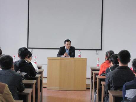 最后,姜老师寄语2013级新同学,要积极了解学院、热爱学院,继承发扬学院老一辈教师和杰出校友的优良传统,奋发图强、刻苦学习、励志成才。姜老师热情洋溢、激情四射的讲话感染了2013级新生,深入浅出、贴近实际的话语让同学们感同身受,他们为拥有姜老师这样出色的校友感到自豪,并树立起珍惜青春、明确理想、把握现在的信心。负责学生工作老师陈迪男进行总结发言,对2013级新生提出了具体的学习、工作要求并给予殷切希望,希望同学们能修正自我、完善自我、发展自我,成为祖国的栋梁之才。(摄影:尹淼)
