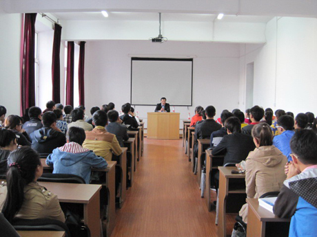 为切实做好2013级新生入学教育工作,帮助新生树立正确的世界观、人生观、价值观,使其尽快适应新环境、了解专业学习、快速融入大学生活,9月27日下午,我院在226网络多媒体教室为2013级新生举办了优秀校友经验交流座谈会,特邀优秀校友、团委组织部部长姜国玉作以《〈青春与梦想〉——站在大学四年起点的路上》主题演讲。参加此次报告会的人员有学院副院长袁晓波、学生工作负责人陈迪男教师、辅导员尹淼、新生辅导员池鑫彤,2013级全体新生参加了大会。
