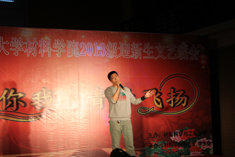 为了迎接2013级新生的到来,给新生送上美好祝福,增强材料人的凝聚力与创造热情,2013年9月27日18点,由材料学院举办的“材承你我,青春飞扬”迎新生文艺晚会在南区1号楼阳光大厅隆重举行。莅临本次晚会的嘉宾有材料学院院长孙凤莲,材料学院党委书记王鹏,材料学院副院长刘立柱,材料学院党委副书记、副院长李国辉,全体辅导员、班主任和部分老师,各兄弟学院团总支副书记及学生会主席等。