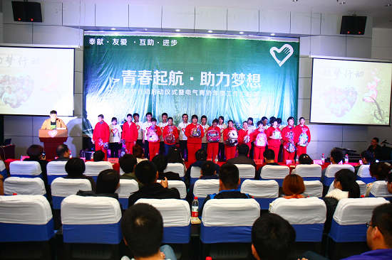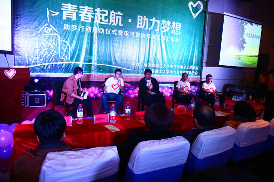 为了弘扬“奉献、友爱、互助、进步”的志愿者精神、呼吁青年学生及社会上更多的人去关注残障儿童的健康成长,总结过去一年的青年志愿者协会的工作,更好地为今后的志愿工作奠定基石,2013年10月26日哈尔滨理工大学电气青协(郭明义爱心团队哈理工分队)在西区一号楼0220举办了“青春启航•助力梦想”助梦活动启动仪式暨电气青协年度总结大型汇报晚会。电气学院党委副书记兼副院长杨芳、全体辅导员、育新中学校长及教师和学生代表、文都教育、金斯卡传媒领导出席晚会,电气学院党委副书记杨芳代表学院致辞,电气青协指导教师臧欣昱老师对青协去年的工作进行了总结并对下一步工作提出了要求和希望。