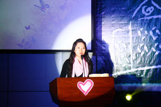 随后,对过去一年涌现出来的先进个人进行了表彰,党委副书记杨芳为优秀志愿者颁发证书,以此鼓励志愿者积极进取,弘扬志愿服务精神,不断突破自我,实现自我的人生价值。晚会中激情澎湃的诗朗诵《以志愿者的名义向青春汇报》诵出了青年志愿者的崇高信仰,心存爱心,无悔付出,积极奉献,提升自我,践行宗旨的优良传统在90后大学生中得以展现,展现出我校学生的精神风貌与追求。