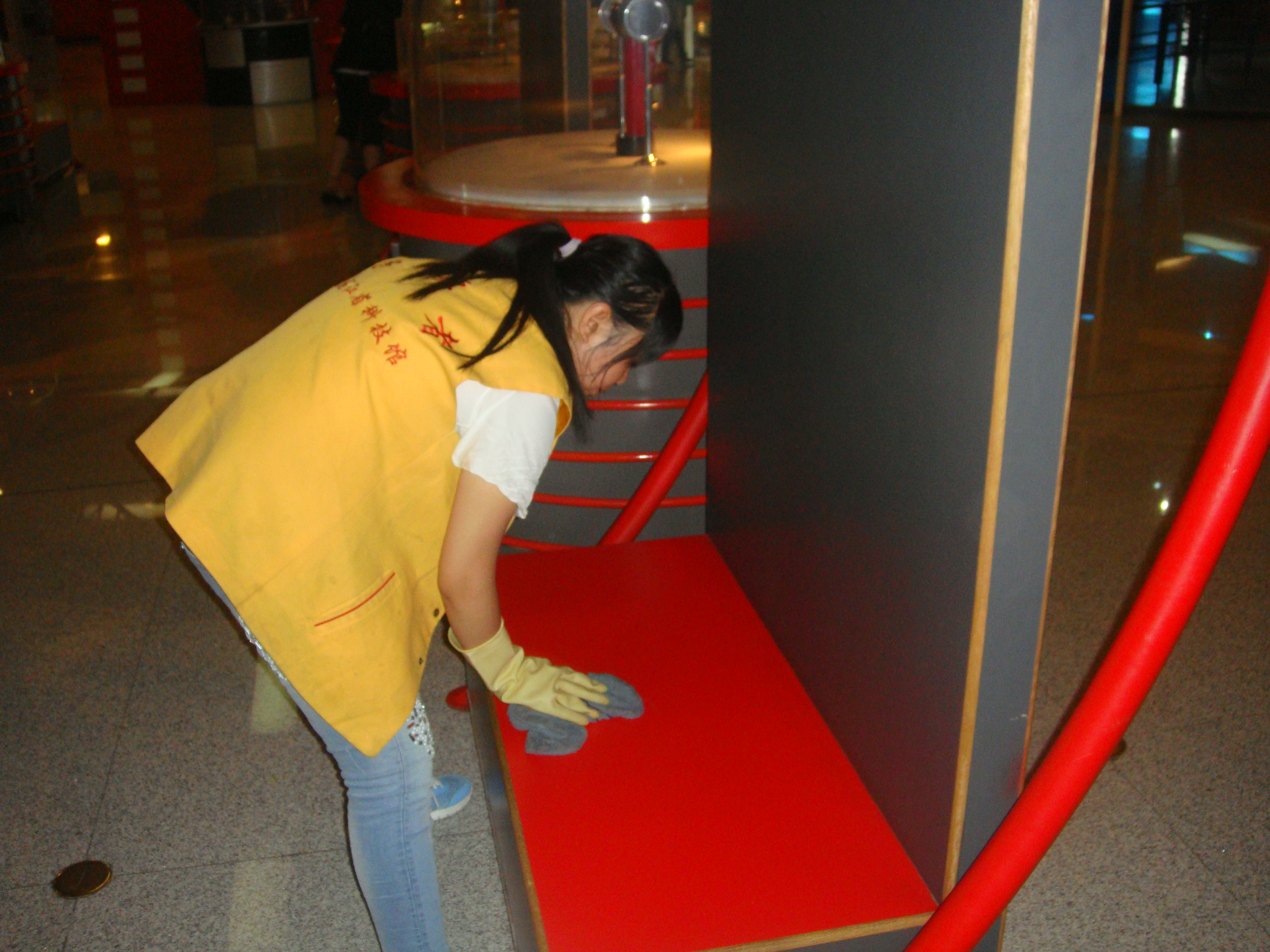 志愿者在清扫科技馆器材