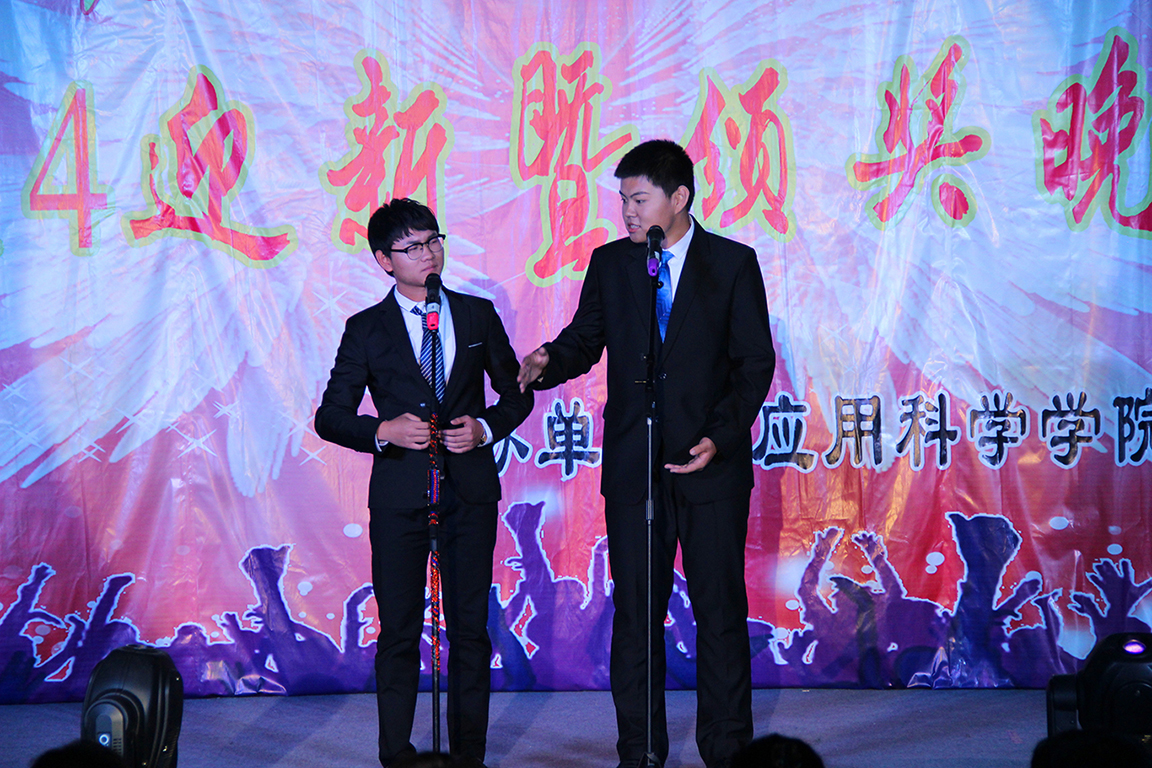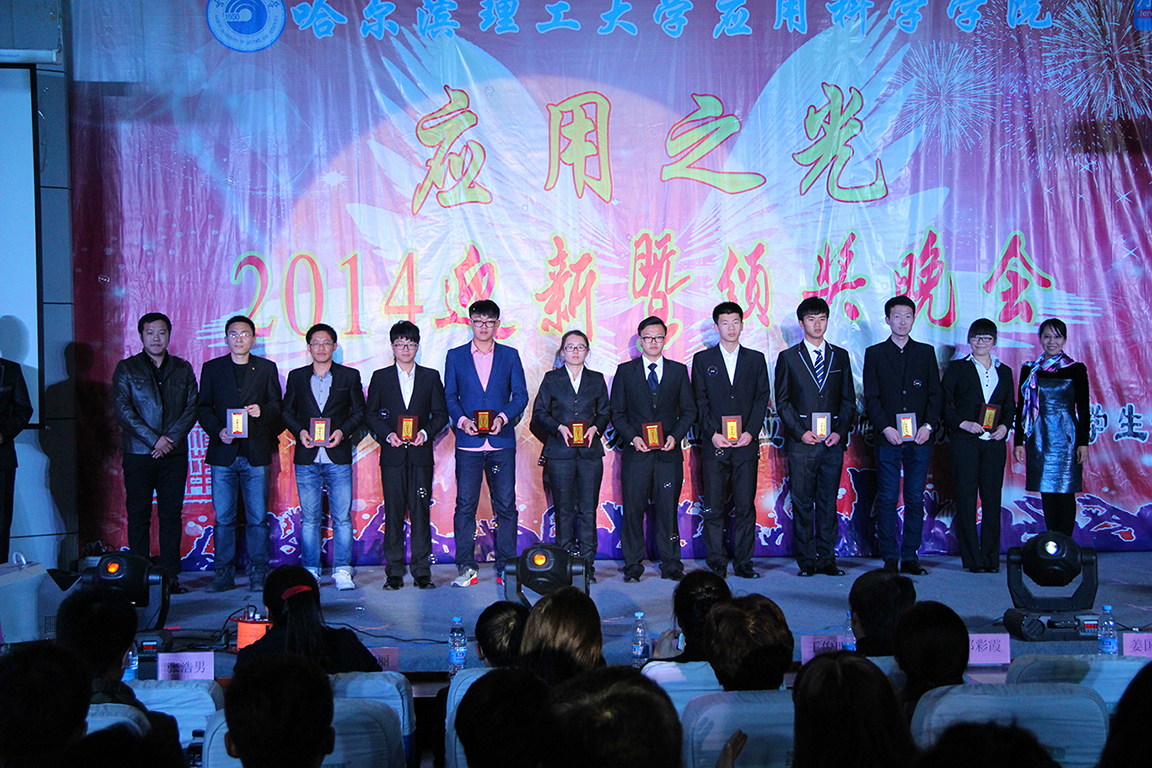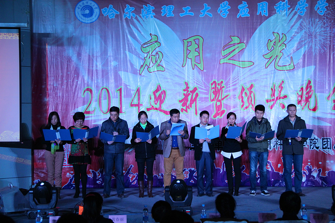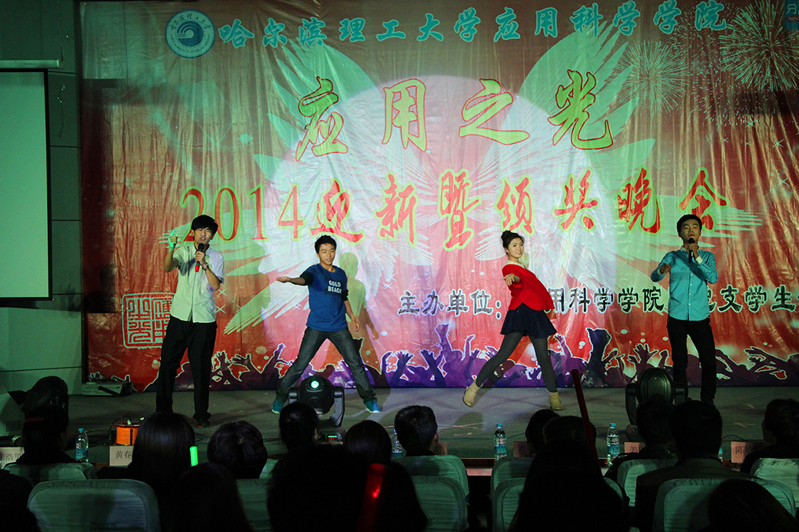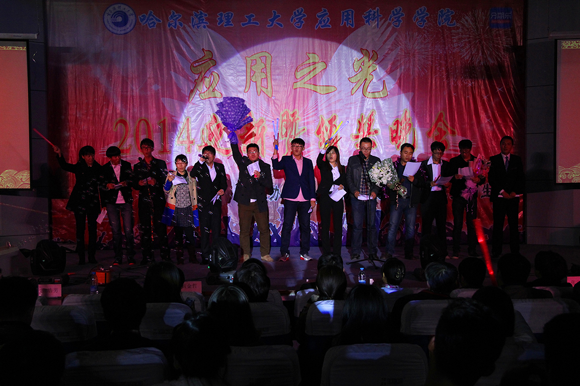 为喜迎2014级新生,并表彰上一年度优秀学生代表,应用科学学院院于2014年10月18日晚6点30分,在西区一号楼0220报告厅隆重举办了“应用之光”迎新暨颁奖晚会。出席晚会的领导及嘉宾有:学生处副处长初春艳、校团委副书记姜国玉、应用科学学院院长王俊明、院党委书记邓彩霞、副院长黄金哲、院党委副书记陈迪男、院团总支书记、11级辅导员黄春丽、学生会指导教师、12级辅导员张浩男、13级辅导员李笑宇、刘桂娟、14级辅导员张文超以及全体14级班主任。