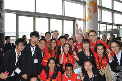 与各国大学生合影留念