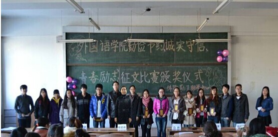 征文比赛不仅得到了外国语学院学生积极踊跃的参加,同时也吸引了许多兄弟学院学生的积极参与,其中涌现出了许多优秀文稿,他们中有表达了对“学问勤中得,富裕俭中来”的理解,有表达了对“保剑锋从磨砺出,梅花香自苦寒来”的感悟,也有表达了对人生价值观的正确思考,同学们在比赛中得到了启迪和反思,达到了本次活动举办的目的。经过层层选拔,共评选出一等奖1名,二等奖2名,三等奖3名,优秀奖4名,并于11月20日举办了征文比赛的颁奖仪式,外国语学院党委副书记周晓丽、外国语学院辅导员相征、外国语学院勤工助学指导教师李竖新出席了本次颁奖仪式。