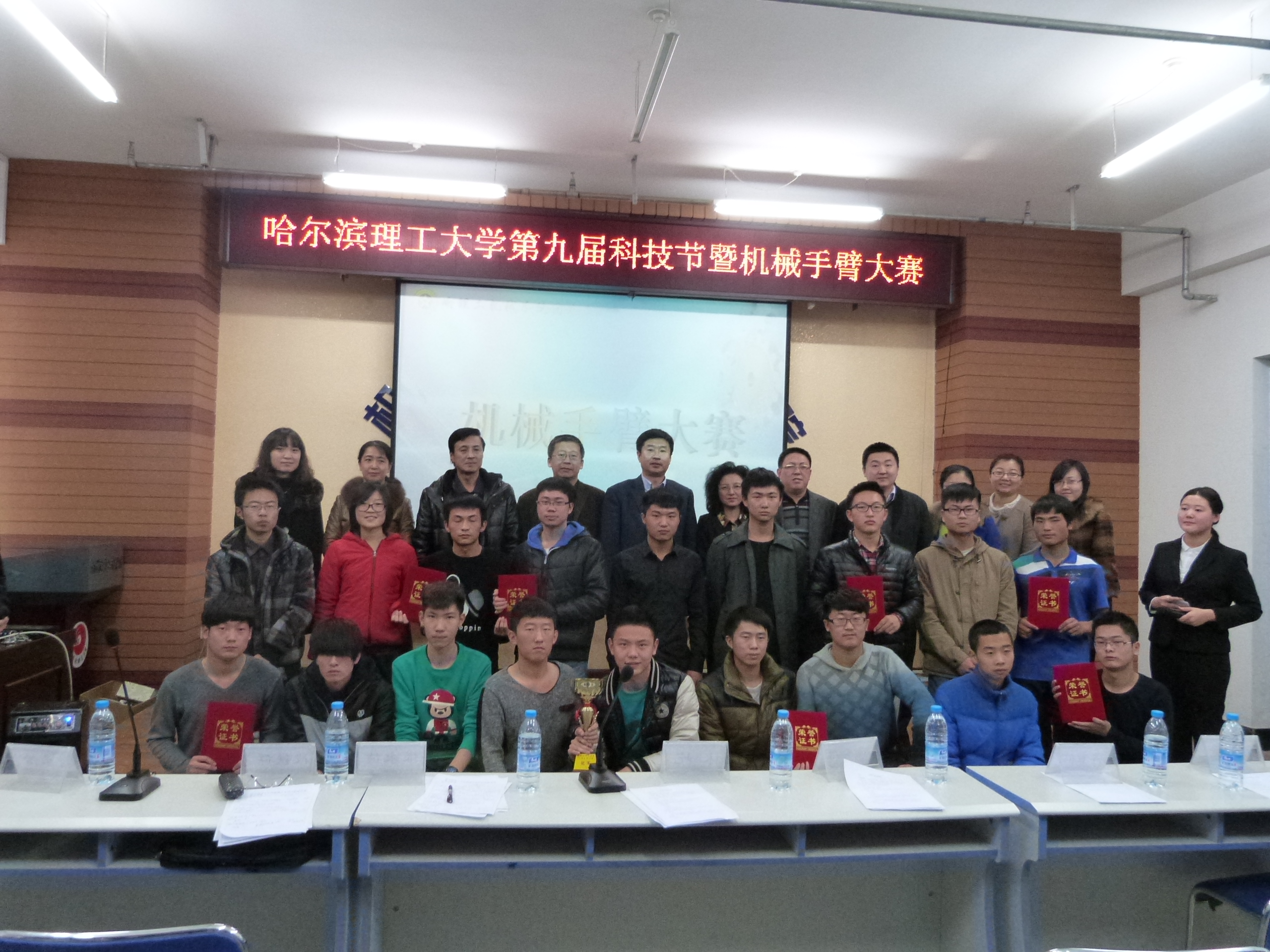 为丰富大学生校园文化生活,倡导探索未来、追求真理、拥抱科学的理念,培养同学们团队合作能力和创新能力,由哈尔滨理工大学校团委主办,机械动力工程学院团总支承办的第九届大学生科技节之机械手臂大赛于11月21日在新主楼C-0305多功能厅成功举办。本次大赛为首届机械手臂大赛,参加本次大赛的领导及嘉宾有:机械学院党委书记林屹、机械学院副院长隋秀凛、机械学院党委副书记谭世信、机械学院副院长姜彬、校团委王尧以及学院全体辅导员老师。担任此次大赛的评委有:机械学院副院长张永德教授、机械设计系主任段铁群教授、机械基础系潘承怡教授。