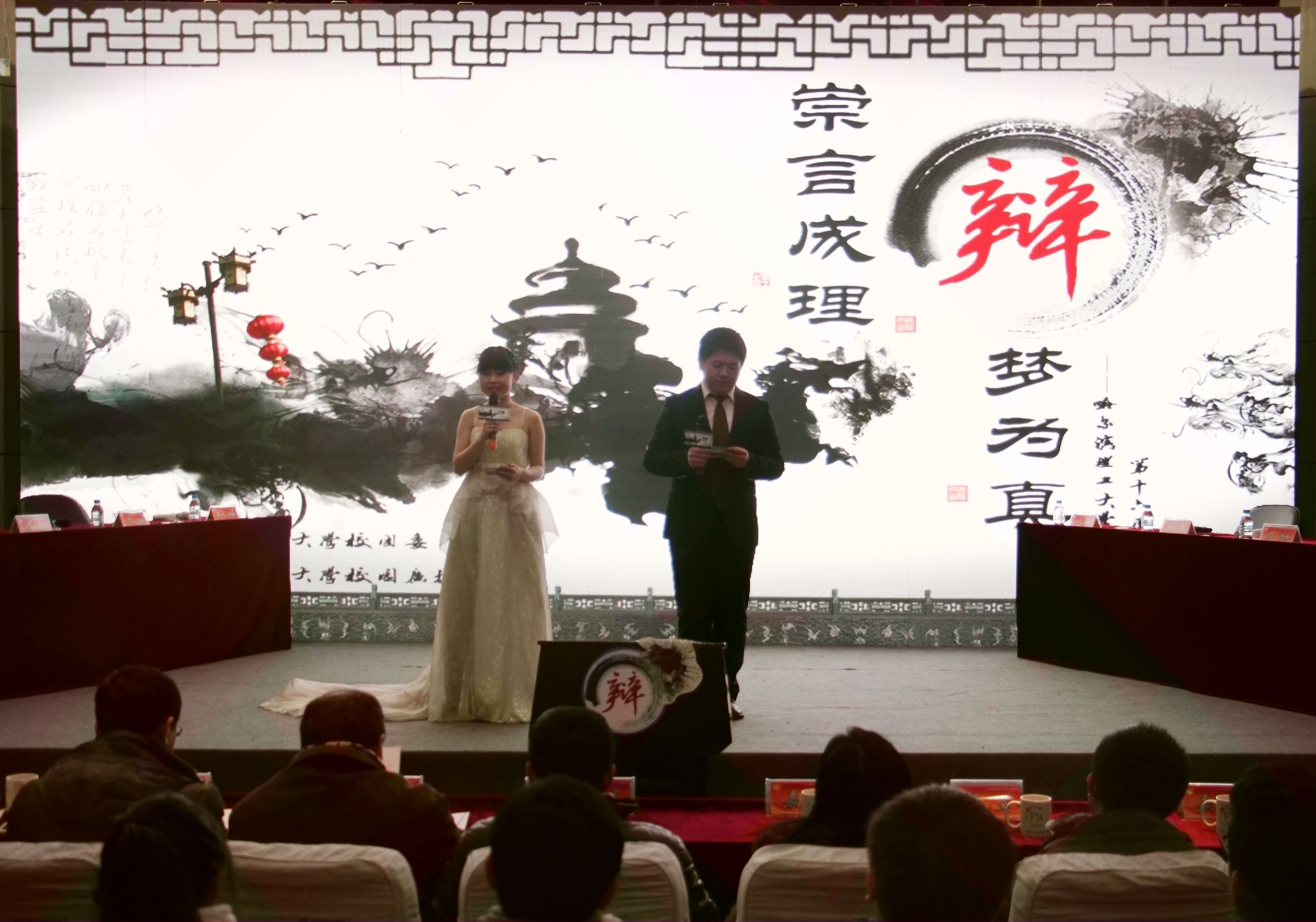 2014年12月5日晚6:00,由校团委主办,校广播台承办的哈尔滨理工大学第十六届校园辩论赛总决赛暨颁奖典礼在西区一号楼0220报告厅隆重举行。莅临本场比赛的嘉宾及评委有:建筑学院党总支书记姚秀荣,校团委副书记姜国玉,黑龙江省演讲与口才协会会长刘志伟,黑龙江省演讲与口才协会副会长、马克思主义学院刘双胤,黑龙江大学校团委张丹,校宣传部张强,校学生处焦岚,校团委曹石。