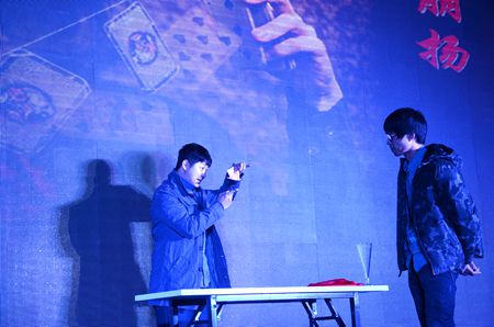 机械学院于朋扬同学表演魔术《魔法穿越》
