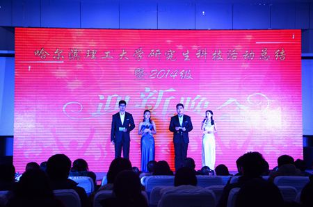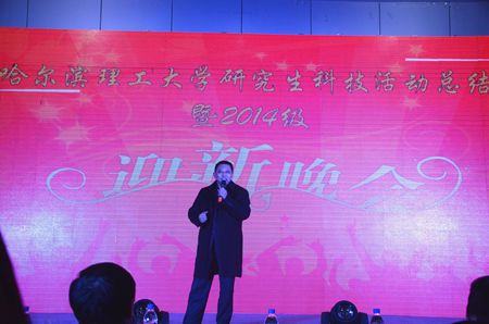 12月19日18时,由哈理工大学研究生部主办,研究生团总支、研究生会承办的哈尔滨理工大学研究生科技活动总结暨2014级迎新晚会在西区一号楼0220报告厅隆重举行。研究生部主任戈宝军、马克思学院书记李庆华、建筑学院书记姚秀荣、电气学院副院长宋立新、计算机学院副书记戴湘竹、自动化学院副书记徐岩、研究生部副主任段宏伟、研究生部副主任李敬波、研究生部副主任许家忠出席本次活动。研究生部全体工作人员、各学院研究生辅导员以及哈尔滨工程大学、东北农业大学、哈尔滨师范大学、哈尔滨医科大学、黑龙江中医药大学的研究生会主席参加了此次活动。