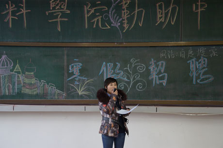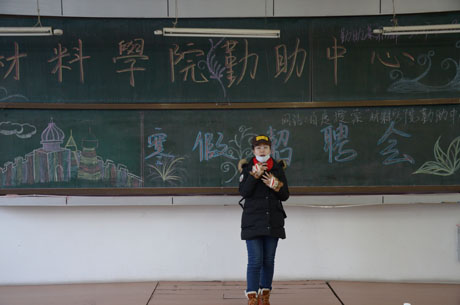 2014年12月21号,在寒假即将到来,材料学院勤助中心在南区一号楼240举办了2015年寒假兼职招聘会。三星、麦当劳、伊利等11家知名企业及公司到场,共为同学们提供了100多个勤工助学兼职岗位,近两百名学生入场与用人单位进行面试,部分学生最终成功与用人单位达成兼职意向。