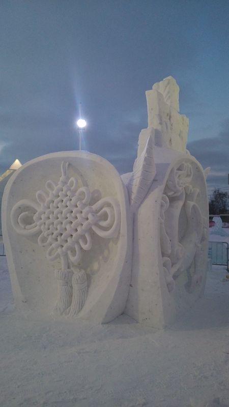 俄罗斯杯国际冰雕雪雕比赛是俄罗斯乃至世界最具影响力的雪雕比赛之一,比赛地为俄罗斯彼尔姆市。本次比赛共有9个国家的代表队报名,组委会通过选手投寄的雕塑设计图选出了中国、俄罗斯、拉脱维亚、马来西亚、法国、日本、泰国、阿根廷、意大利等9个国家代表队共15组队伍进入决赛。经过5天的激烈角逐,我校研究生庞宇同学的参赛作品《中国之声》最终获得雪雕大赛的特等奖,为我校研究生在该领域取得的最好成绩。该作品是以中国传统元素为表现主题,三个京剧脸谱背面分别刻有中国龙、中国结、狮头门把手,向外国展示了中国传统元素及图案。