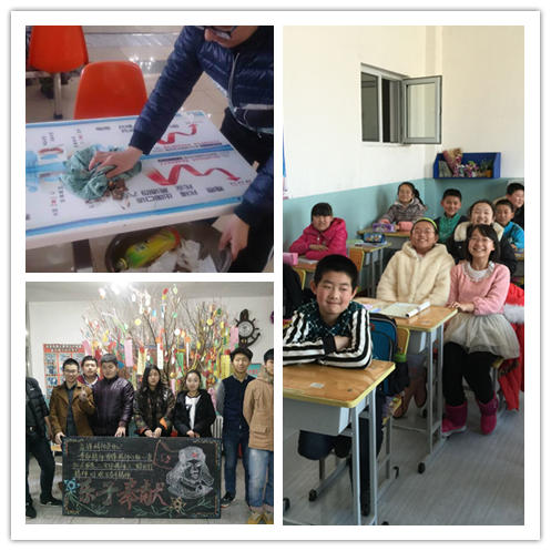 左二:测通学院整理图书 右一:大学生讲坛清理垃圾