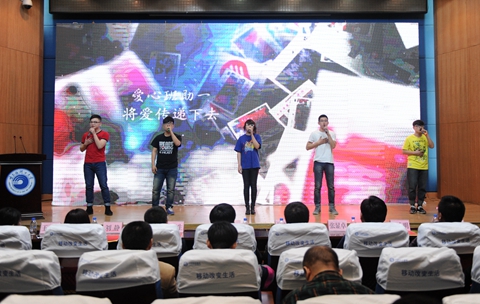 根据我校志愿服务西部计划志愿者故事改编的主题音诗画《青春的选择》迅速将师生带入温暖感动的情境。我校大学生志愿服务西部计划工作自2003年开展以来,包括我校研究生支教团组建也已有两年时间,已有11批,共计130余名同学赴西部和黑龙江省基层贫困县参与志愿服务,他们响应国家的号召,投身于西部开发的伟大征程中,贡献出自己的一份力量。涌现出陈艳刚、于衍刚等一批优秀志愿服务的典型,他们在奉献中实现着自己的人生价值,为西部和基层经济建设和教育事业的蓬勃发展贡献着自己的无悔青春。“用一年不长的时间做一次终生无悔的事”,我校首批中国青年志愿者扶贫接力计划研究生支教团团长马涛与大家分享了他们快一年的志愿服务体会与心得,当说到服务地的小学生们对他们的感情与不舍时,马涛不仅潸然泪下,三名成员做了访谈分享,现场师生感动落泪。这一年的支教服务既是我校研究生支教团扎根泥土拳拳之心的表达,也是对母校精神和文化的精彩传承,更是奉献奋斗的青春选择。之后,首届研究生支教团成员为我校第二届研究生支教团成员佩戴志愿者胸针,象征着将志愿精神薪火相传。