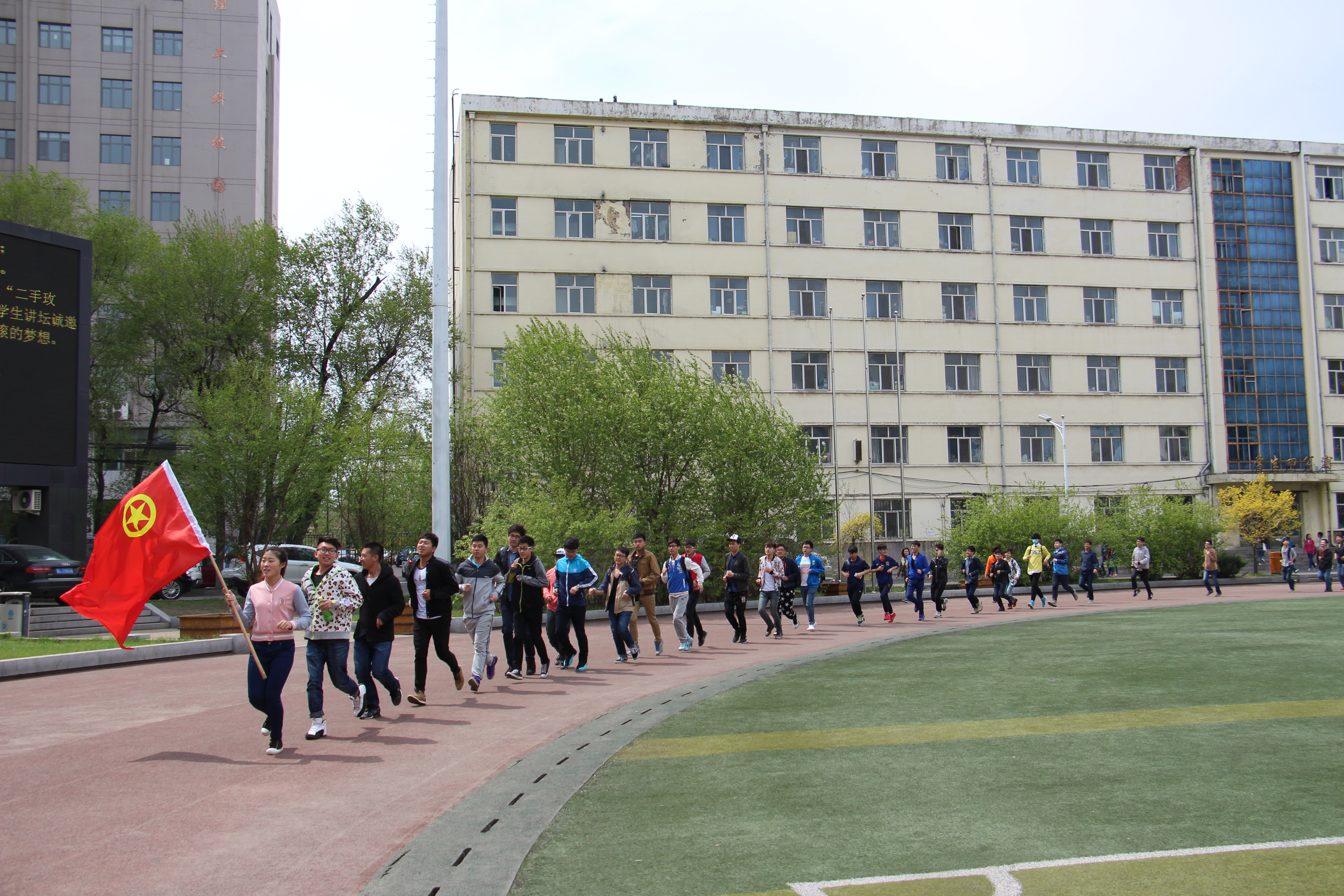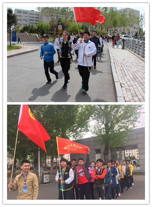 随着孟上九副书记为第一支传递队伍授予共青团团旗,青春旗帜传递跑活动正式在三个校区同时开跑,由各学院组成的十八支学生队伍和一支校级组织学生队伍,历经一个小时,近五百余人参与传递,团旗环绕整个哈尔滨理工大学。我们坚信,五四精神会像这面团旗一样,在每一个理工学子的心中传递,激励我们青年学生。近期将陆续开展多项“三走”群体体育系列活动,如深受学生熟知的篮球赛、足球赛、结合运动会开展的趣味运动会,以及具有普遍群体参与性的拔河,跳绳,棋类大赛等,真正做到将“三走”活动持续地在校园中开展。
