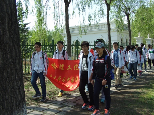 徒步活动于早晨六点半开始,同学们在公路大桥集合,向着美丽的太阳岛进发。在为时两个小时的徒步中,同学们热情高涨,大步行进,充分展现健康、活力、青春的精神面貌,并在徒步过程中谨记绿色环保精神,倡导健康文明的生活方式,不时将路边草丛中垃圾捡起,放到准备好的垃圾袋中,为保护身边美丽环境贡献自己的力量。到达了目的地同学们既疲惫又兴奋,在简单的休整和午餐之后,同学们又一起参加了“折报纸”、“单腿跑”等团队游戏,游戏中队友配合默契,精彩不断。游戏结束后,大家不忘收拾周围的生活垃圾,保护环境。最后,徒步队伍乘上渡江的船来到防洪纪念塔下,开展绿色环保主题宣誓。