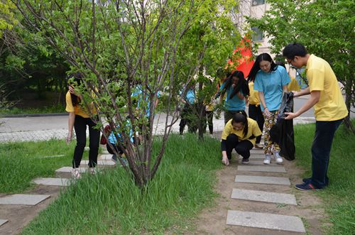 研究生干部捡拾烟头
