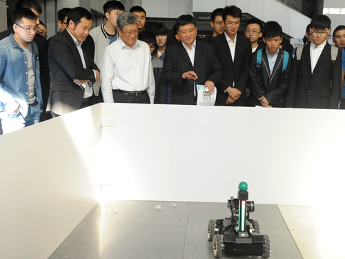 比赛现场嘉宾观看全国机器人大赛参赛作品展示