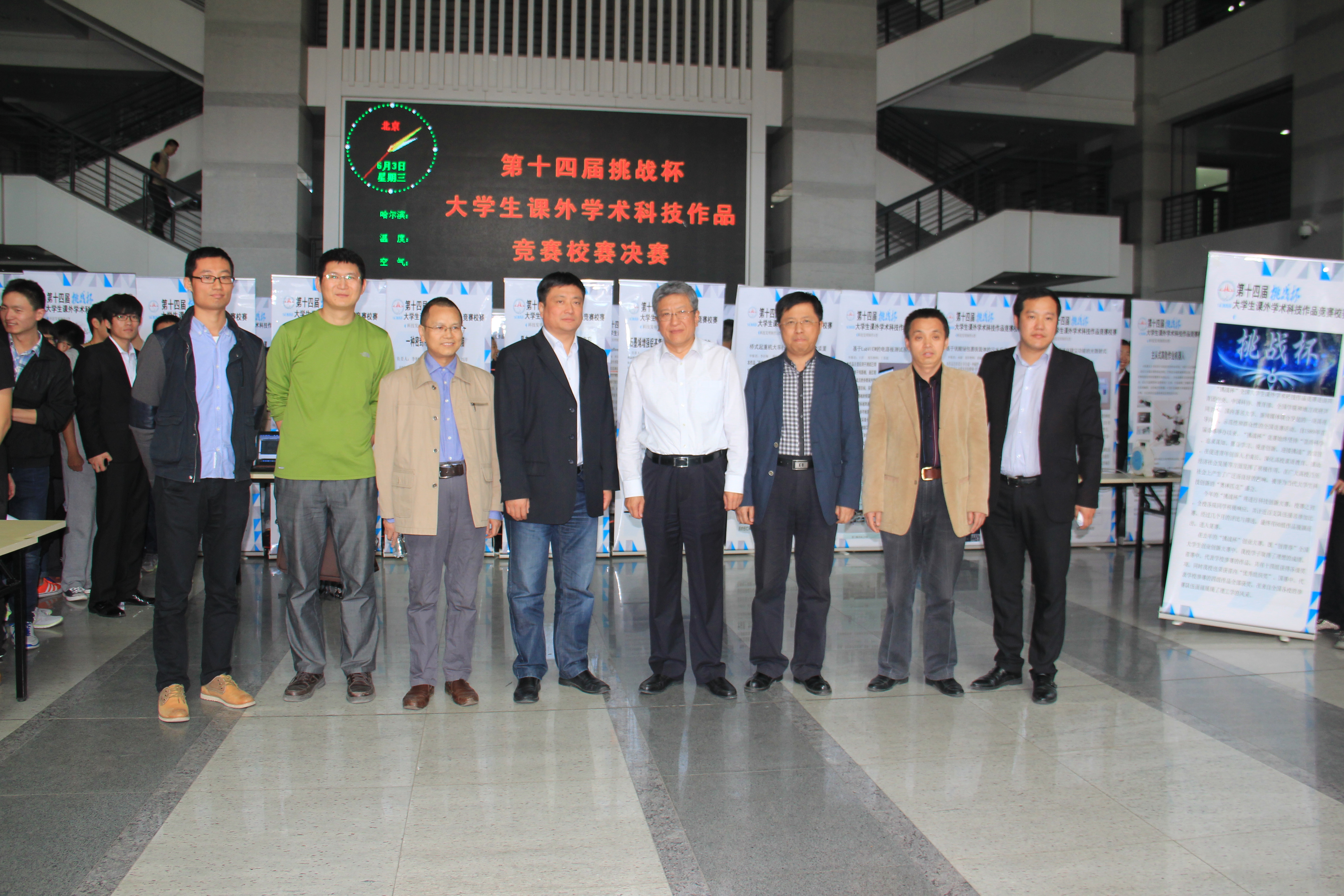 6月3日14时,第十四届“挑战杯”大学生课外学术科技作品竞赛校赛暨学生课外学术科技作品展在我校教学主楼一楼大厅举行。校长李大勇、校党委副书记孟上九莅临本次比赛并为学生课外学术科技作品展揭幕。本次比赛由哈尔滨理工大学校团委主办,哈尔滨理工大学校科技协会承办,旨在提高同学们对科技创新的兴趣,提高自主创新的热情。自动化学术委员会主任尤波、测通学院副院长童子权、材料学院副院长石德全、马克思主义学院副院长伍玉林、校团委副书记姜国玉、电气学院周封、机械学院姜金刚担任本次比赛的评委。