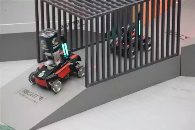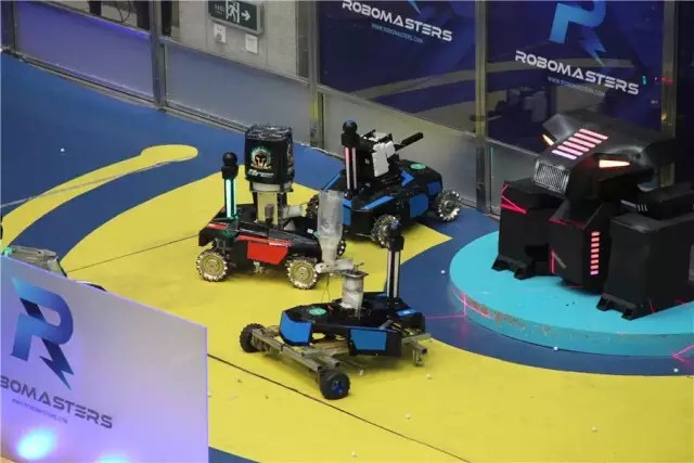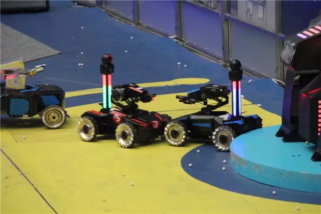 比赛采用红、蓝双方对抗的形式,每场限时5分钟。参赛双方各派五名“汽车人”战将,在复杂地形中相互较量,进行“实弹”射击对抗,完成指定任务,最终由电子裁判系统判断比赛胜负。战车本身的造型和战斗场地的设计是本次大赛的两大亮点。在篮球场大小的比赛场地内,基地、维修站、瞭望塔、补给站、战壕、桥梁等军事设施一应俱全。比赛场地实现全智能化实时控制,突出声光电效果,现场视听冲击力震撼人心。比赛中以机器人第一人称视角的操作模式,通过图像传输技术实时传回高清图像,实时展现场地状况。比赛使用的“子弹”是真正可发射的BB弹丸,而机器人车身内部设有可以计算被射中次数的传感器,通过机器人身后附带的可视血条装置,能直观反映出机器人当前状况,被攻击次数过多导致“血量”不足的机器人会被切断电源“扫地出局”。本次大赛提供了颠覆传统的创新实践平台,将基本理论与科技实践紧密结合,极大提高了学生的创造力、自学能力和团队合作能力。对于对计算机和网络技术有狂热兴趣的‘极客’来说,这不仅仅是全新的机器人超级对抗赛,更是能让机器人爱好者、极客工程师发光的竞技平台。