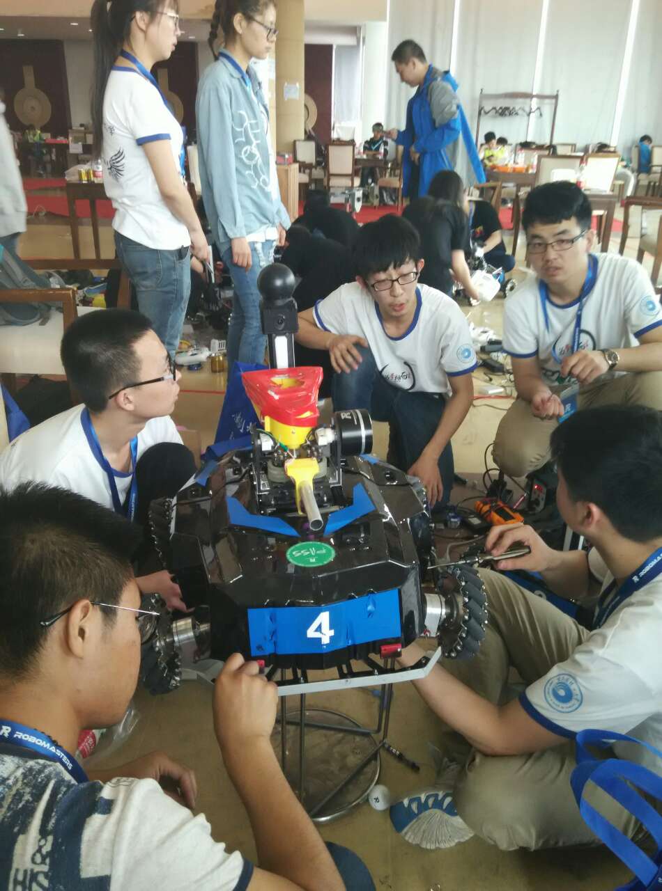 本次比赛在校团委的统筹下,依托工程训练中心相关实验室场地及设备,以工程训练中心万泉老师实验室为基础,在工程训练中心万泉老师、电气学院陈才老师的全程指导下,吸引了机械学院、自动化学院、测通学院等相关专业的20余名同学参与,从机械器件制作、图像识别、程序编辑、操作练习广大师生进行了为期一个半月的紧张备战。本次比赛机器人由哨兵、步兵、射手、炮兵组成,从底盘、减震、保险杠等硬件制作到程序编辑、结构设计、车辆组装等全部由团队成员自行完成,本次比赛得到了工程训练中心领导的大力支持,同时教务处等部门也提供了及时帮助。