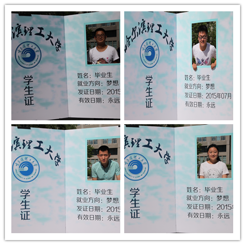 从梦想的原点出发,我们一直在大学成长的路上,学生证相伴四年,但理工记忆却注定相伴一生,姓名:毕业生;就业方向:梦想;发证日期:2015年7月;有效日期:永远。