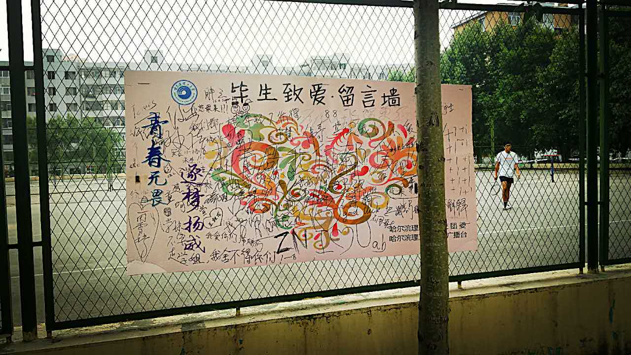 毕业临行前,学子心中必定会有万千感慨,希望对母校述说、与同学兄弟姐妹表达、与师弟师妹分享。将自己的毕业寄语、对母校的祝福、对想表达的情感的着墨连同自己的名字最后一次写在留言墙上。