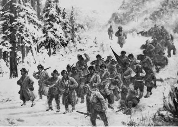 1939年10月至1941年底,东北抗日联军陷入了敌人重重包围的极端困苦时期。杨靖宇领导的第1路军各部指战员们,在缺衣少食的条件下,冰天雪地之中吃树皮、嚼草根,与超过自己几十倍的敌人频繁作战、坚持斗争、苦苦周旋,部队减员过大,无法补充,困难日益加重,游击战争遭到严重挫折,杨靖宇同志不幸于1940年2月23日在蒙江县境内保安村三道崴子被日伪军层层包围最后壮烈牺牲。