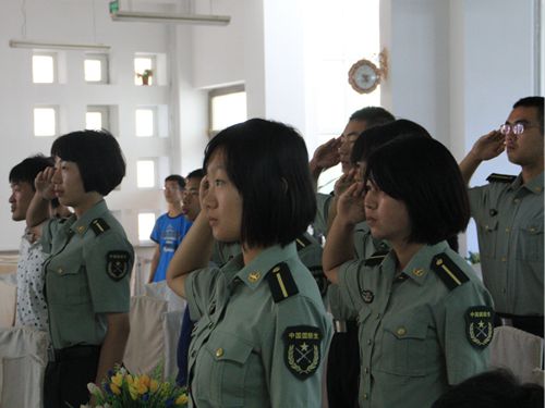 升旗仪式过程中同学们行军礼