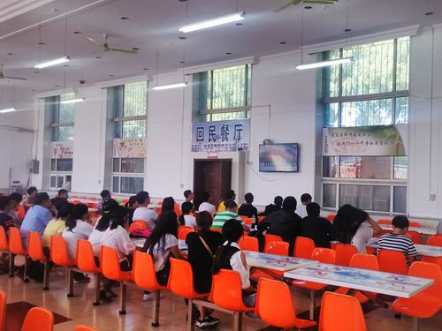 少数民族同学在食堂观看阅兵式