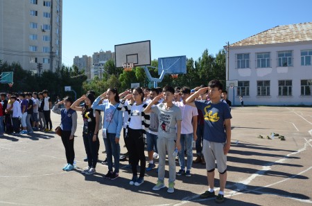 同学们观看阅兵仪式