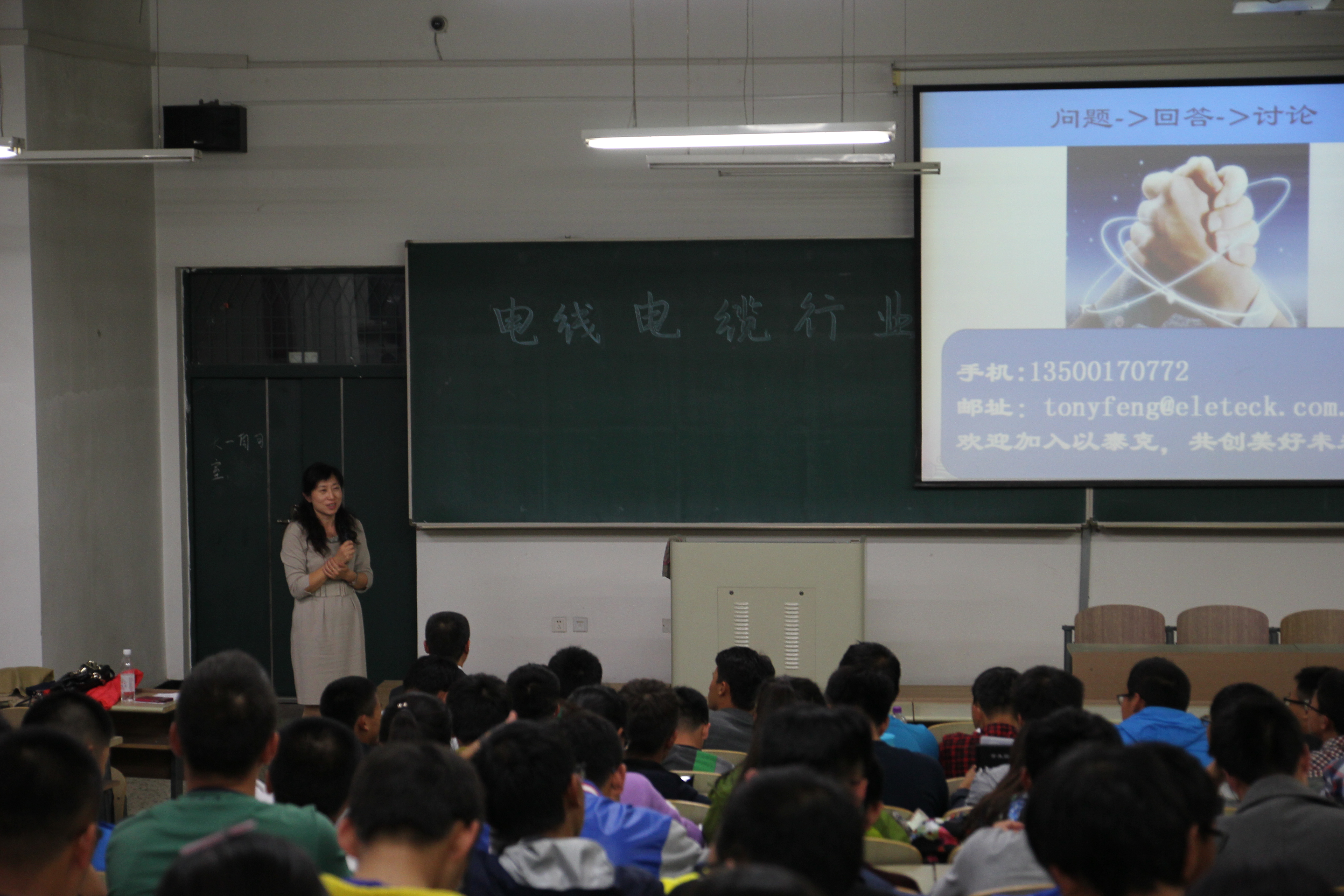 冯志辉先生的讲座以《电线电缆行业就业与创业心得体会》为题,紧密结合自身二十年的就业、创业经历和行业发展的最新趋势,从技术、管理两个角度深刻剖析了就业的方向以及各个方向的优缺点。从职业生涯规划的角度,分享了他的个人感想和认知,毫不保留地向同学们讲述了创业的条件与路线,激励大家树立正确的人生目标并为之奋斗。他还向同学们讲述了在工作中,与人相处的重要性和准则,勉励大家坚持不懈,勇于面对挫折和困难。最后,冯志辉先生着重阐述了生活态度对于学习和工作的影响,鼓励大家以良好的心态面对学习和生活。讲座密切联系行业发展实际,紧紧围绕学生就业、创业这一主题,释疑解惑,深入浅出,不时赢得在场同学们的阵阵掌声。