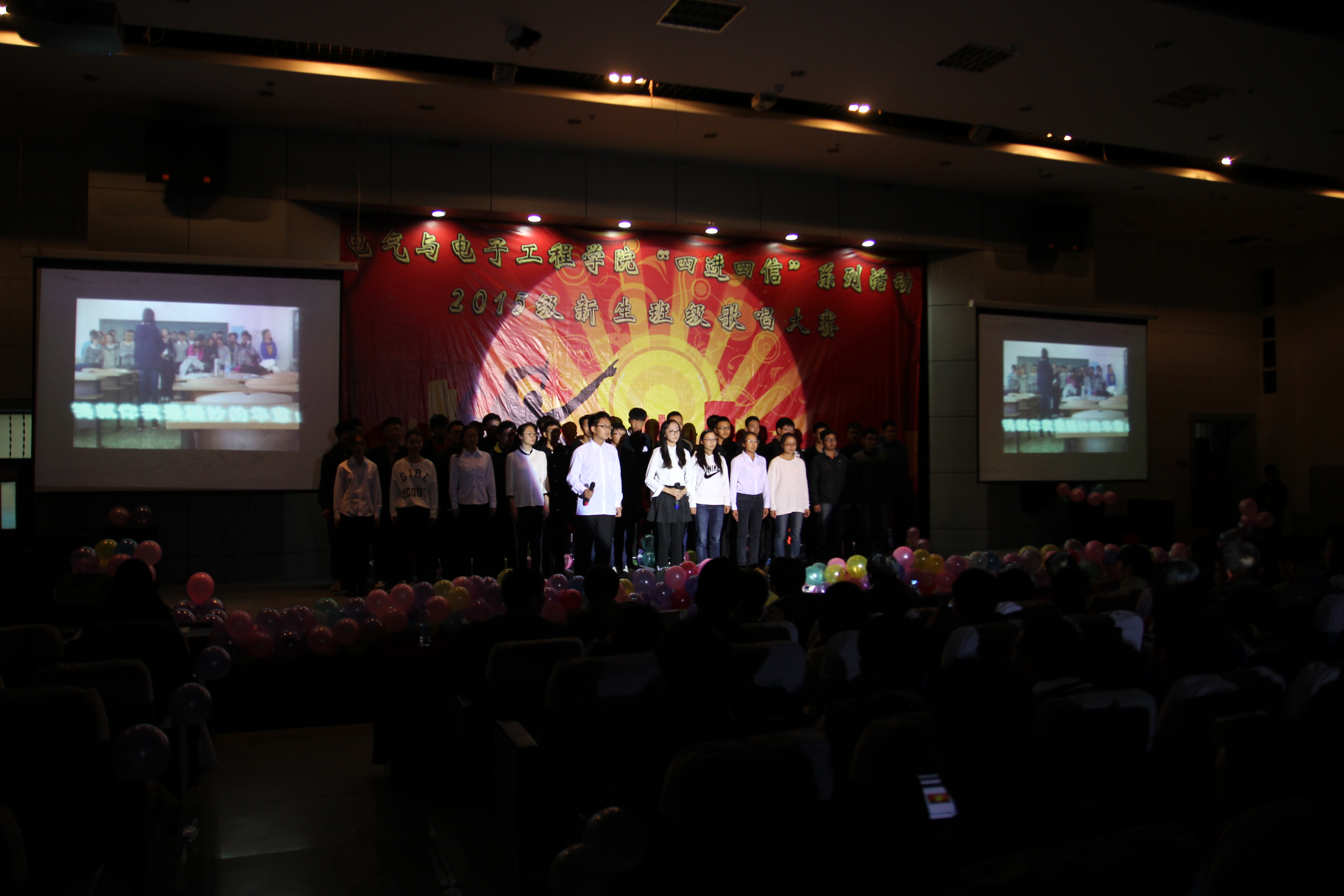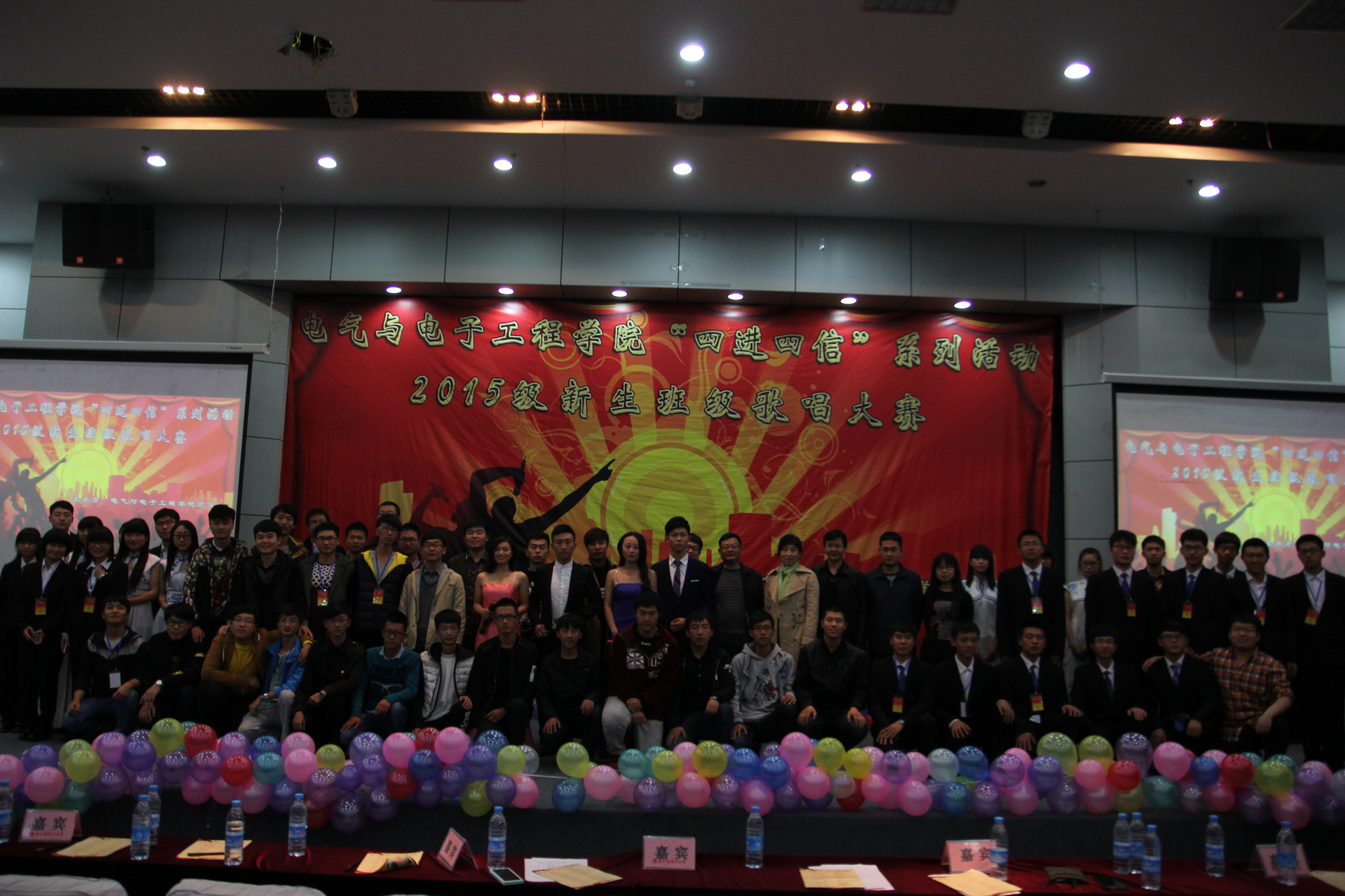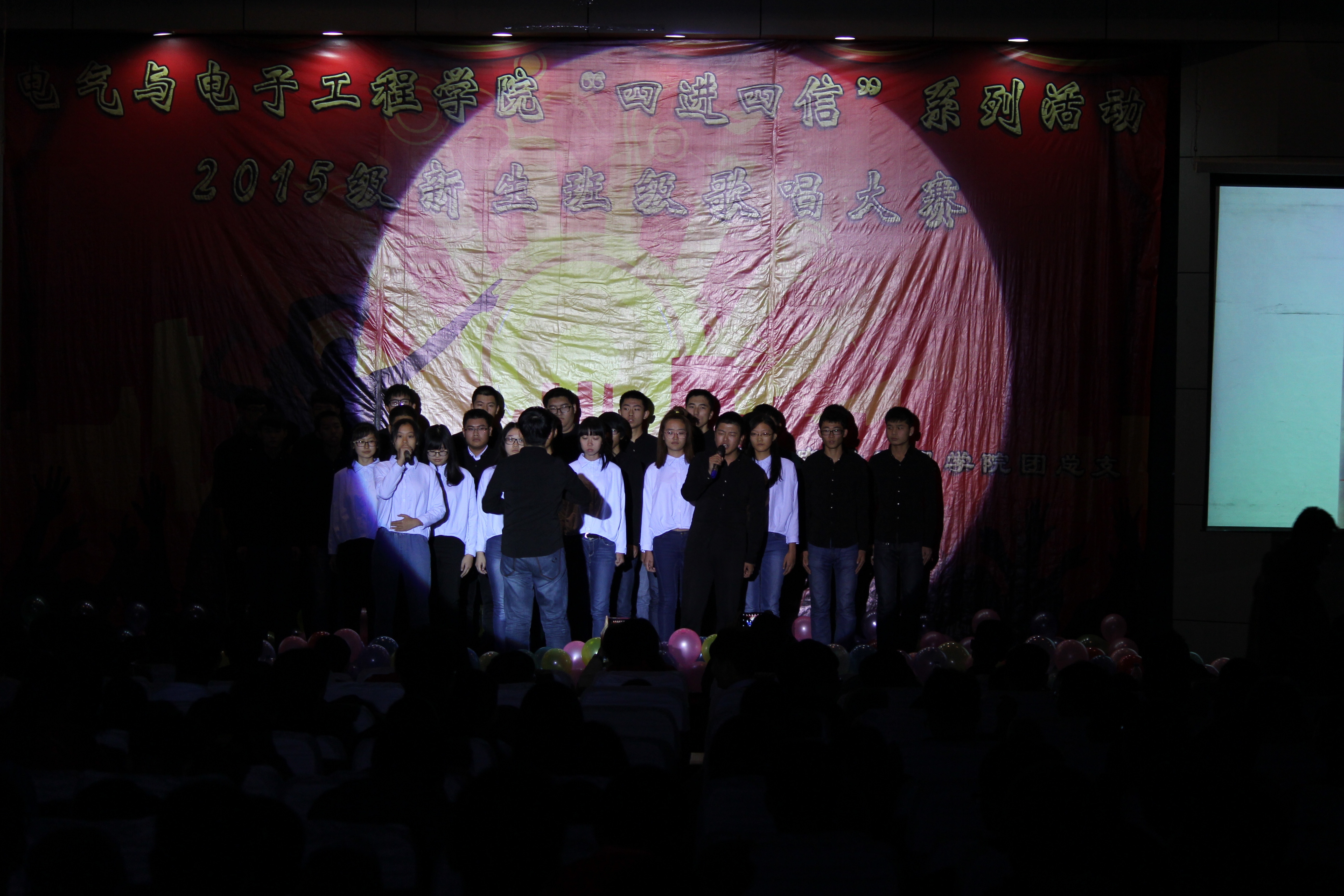为引导和帮助大学生进一步牢固树立对党的科学理论的信仰、坚定走中国特色社会主义道路实现“中国梦”的信念、增强对党和政府的信任、增进对以习近平总书记为党中央的信赖,使同学们提高班级凝聚力、展现大学生青春风采、坚定“三个自信”。电气学院团总支于2015年10月18日14点30分在1号楼0220报告厅举办电气与电子工程学院“四进四信”系列活动——2015级新生班级经典红歌大赛。电气学院党委副书记兼副院长杨芳老师,团总支书记张路杨,辅导员张宏亮、周广、刘关宇出席本次大赛,由张宏亮老师、校十佳歌手武从同学、刘喆同学、闫盛池同学、王博同学担任评委。