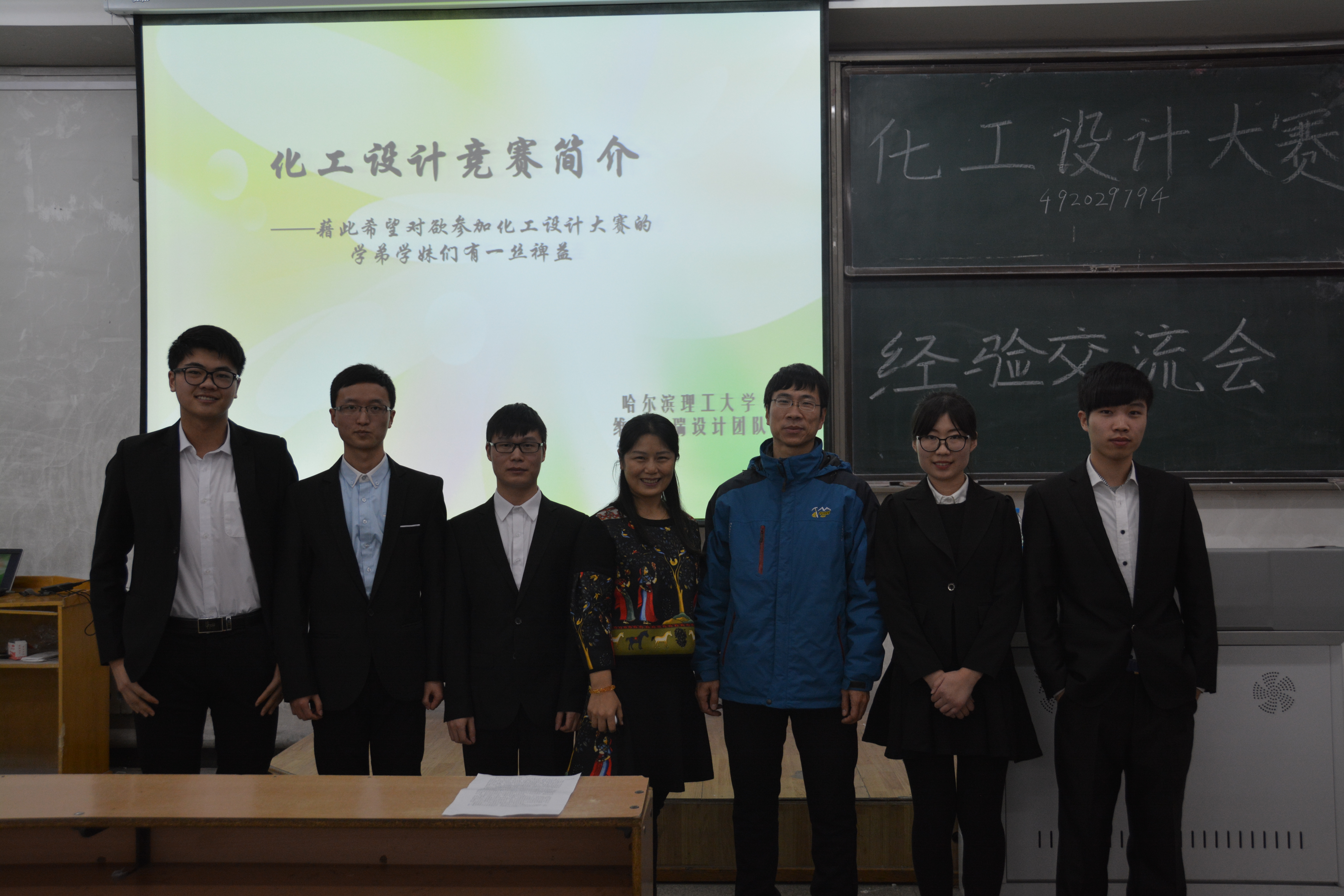 为提高学生综合素质,促进我院素质教育学分化工程开展,让学生积极参与全国化工设计大赛,提高学生化工知识综合运用能力、化工软件的应用能力及创新意识、团队合作意识,化工学院积极为学生搭建创新交流平台,于12月22日晚5:30在三号楼106成功举办了全国大学生化工设计大赛经验分享交流会。大会由田海燕老师主持,艾恒雨、虎佳琦、赵钰良老师及大三学生近二百人参加了本次大会,大会由获得第九届大学生化工设计大赛全国一等奖代表队“维克特瑞”团队成员进行经验交流。