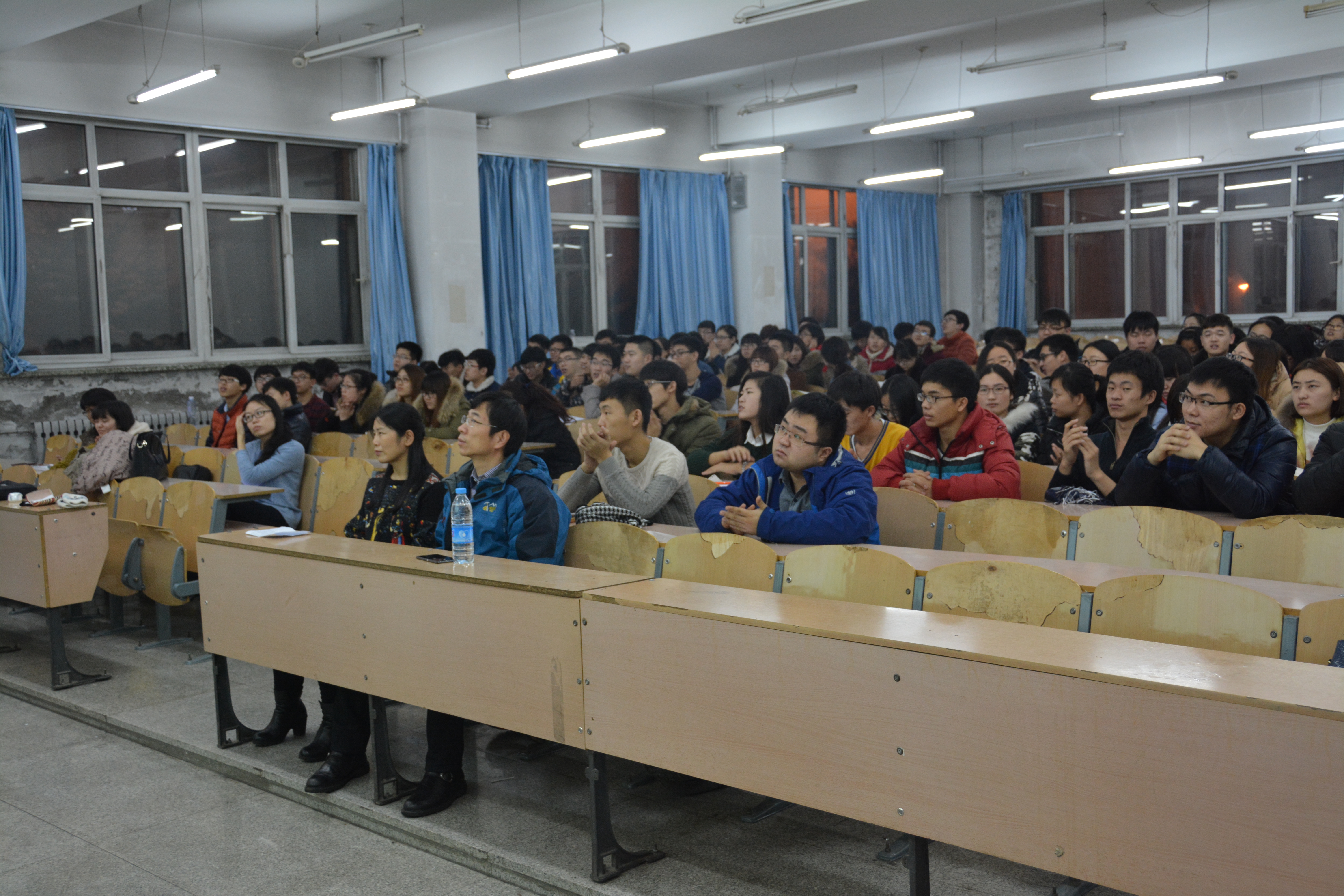 接下来,获奖“维克特瑞”团队成员依次上台从化工设计大赛介绍、参加竞赛的条件、参赛队伍和水平、赛制规程和时间规划、竞赛的设计内容、经验与教训、团队的小故事、竞赛后的巨大收获、可获得的技术支持等方面进行全面介绍,台下同学们认真聆听,对他们的精彩报告时而爆发出阵阵掌声。当现场播放化工设计大赛场区漫游视频时,同学们终于被大赛的作品所征服,更被选手们挑战自我、克服困难、持之以恒的精神所打动,台下爆发出长久地雷鸣般的掌声。