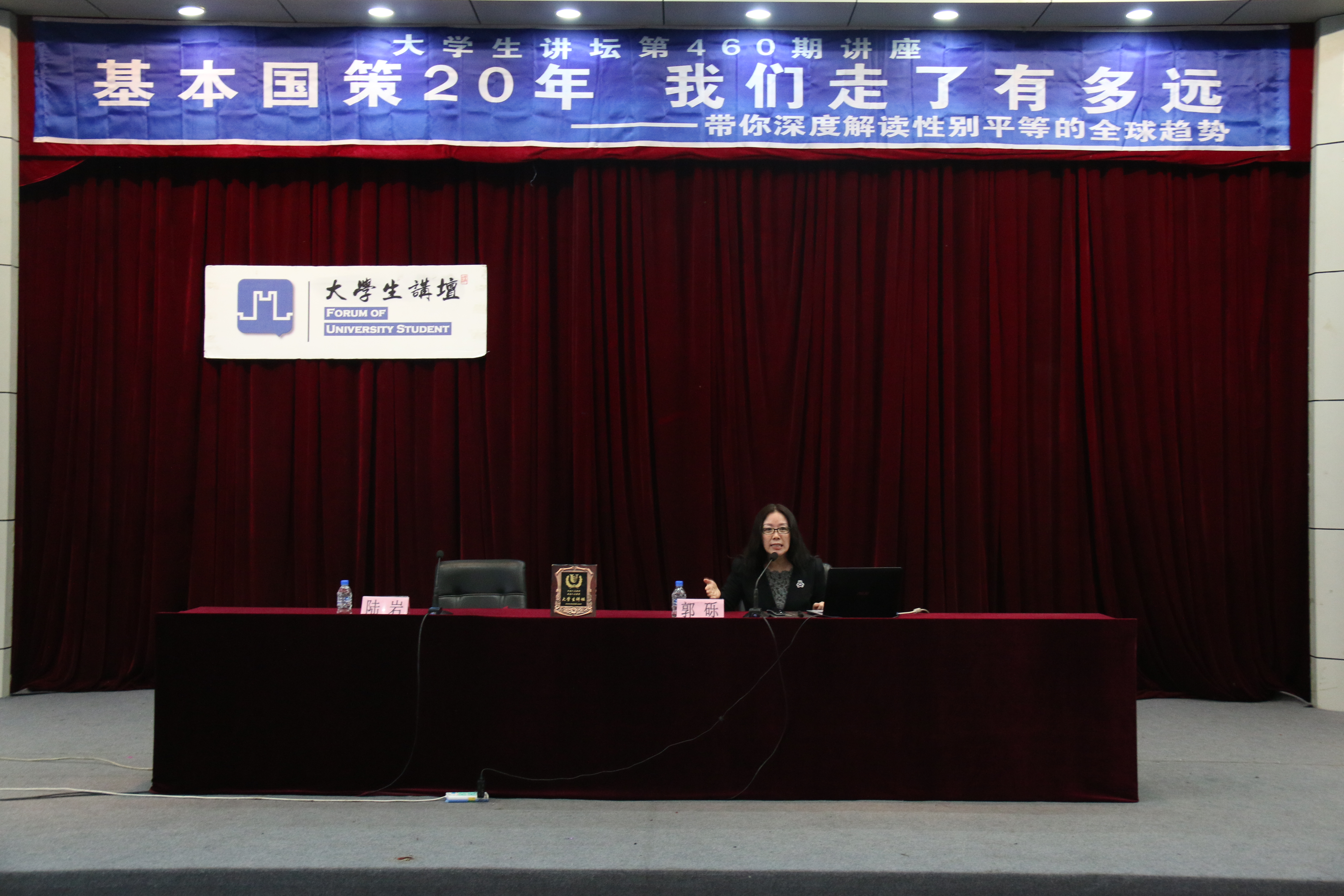 2016年3月4日下午15点30分,大学生讲坛第460期讲座在一号楼0220报告厅举行。本次讲座也是喜迎“三八妇女节”以及学生“女生节”系列活动之一,本期主讲人为黑龙江省妇联副主席、省妇女研究所所长、国内资深妇女理论专家郭砾教授。讲座中,郭教授为我校近600余名的师生深度解读了性别平等的全球趋势以及男女平等基本国策。