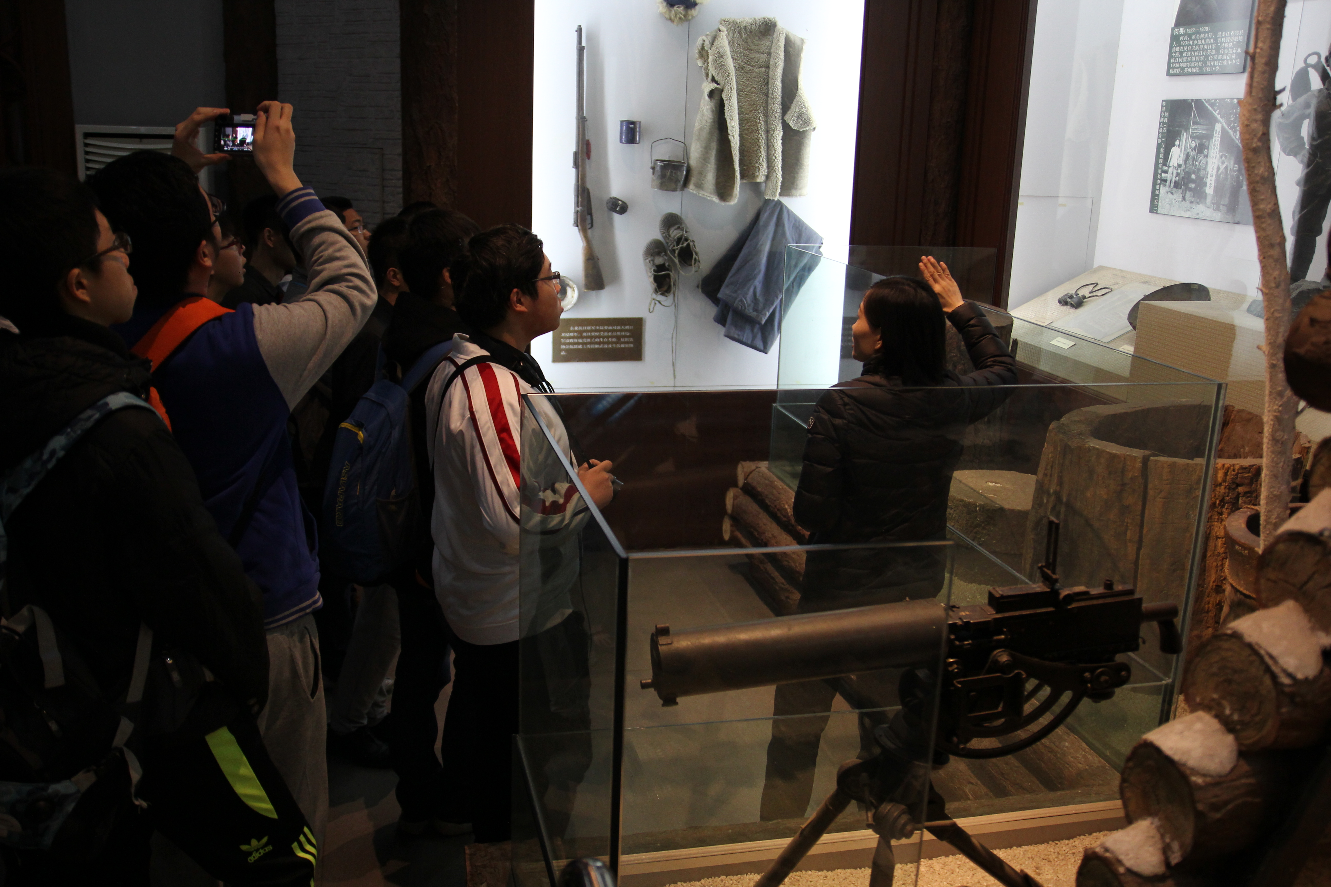 在一幅幅生动的画卷和革命先烈们遗物的映衬下,烈士纪念馆显得格外的肃穆,馆内的工作人员向同学们介绍了各位烈士的英勇事迹。他们中有战斗到生命最后一刻的爱国忠勇杨靖宇,有受尽酷刑仍旧不屈的英雄儿女赵一曼,有宁死不当俘虏毅然投江殉国的八位巾帼英雄……。在烈士纪念馆内,同学们看到了杨靖宇穿过的大衫,王学尧穿过的衣物,赵尚志用过的击杀特务的手枪,赵一曼用过的大碗和写给宁儿的信……看着先烈们留下的饭盒、衣服、军功章、信件,听着他们的英雄事迹,同学们好像回到了那个战火纷飞的年代。战火烧尽了村落但烧不尽中国人的爱国心,硝烟弥漫了大半个中国但摧不毁先辈们的铮铮铁骨,他们为祖国能走向新时代,奋力拼搏着。烈士们个个都是舍身为国、大义凛然,为革命付出自己的一切,他们这忠于革命、宁死不屈的品质,值得同学们学习。