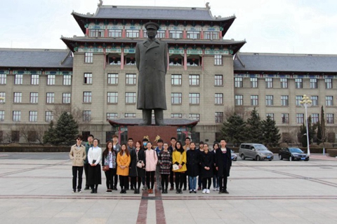 讲解团队成员在哈军工创始人陈赓大将塑像前合影