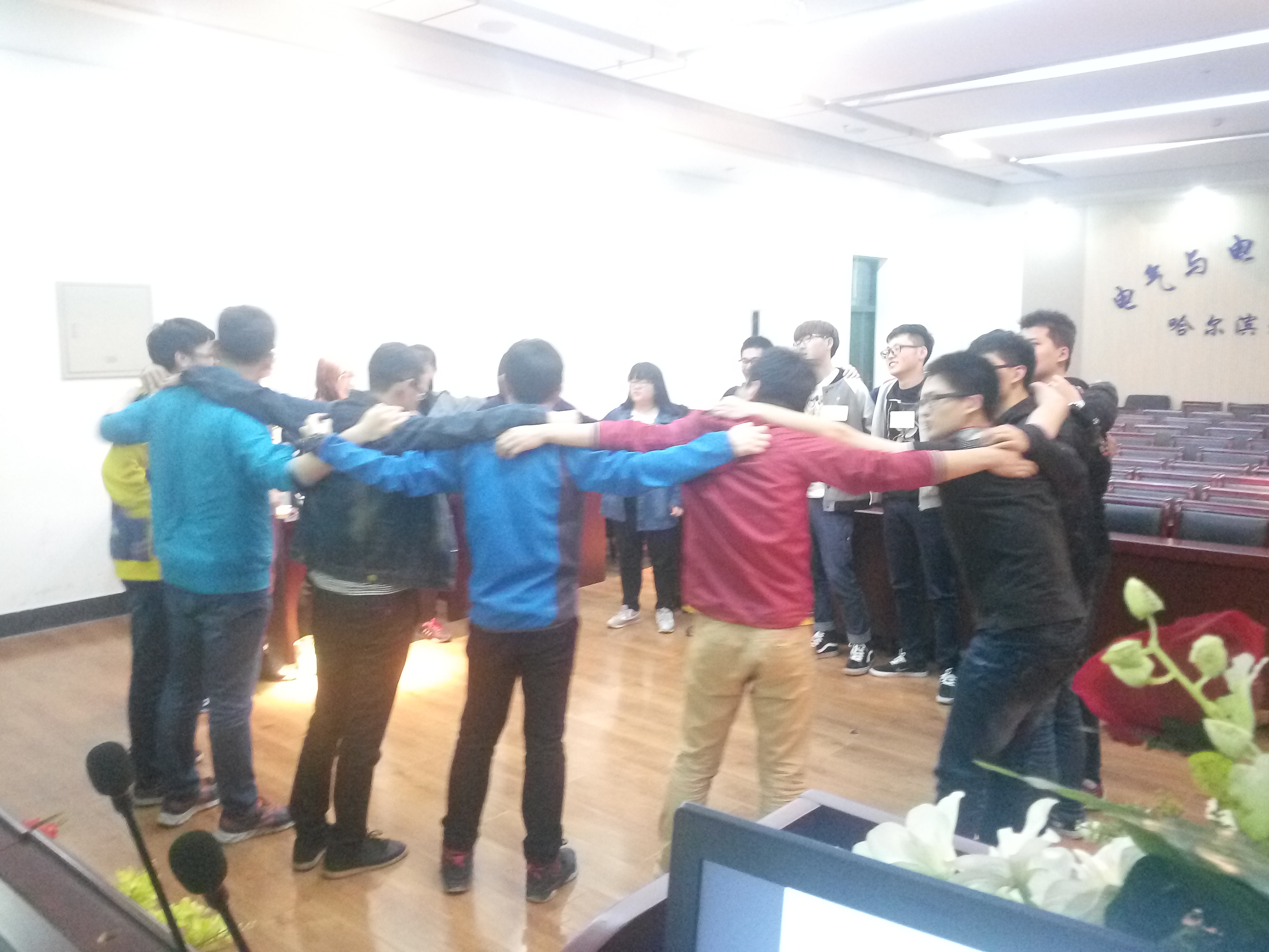活动首先以暖身活动“制作名片”和“同心圆”等开场,消除了彼此之间的陌生感和紧张感,同时为团体辅导活动继续进行做好准备工作。接下来的“握手活动”和“串名字游戏”充分调动了同学们的积极性,也进一步增进了同学们之间的感情。最后一部分的“我们的家”、“梅花开”和“同舟共济”三个团体游戏,让大家在游戏中体会到了集体归属感和团结协作的力量。活动过程中指导老师还请同学们积极思考,分享自己的感受和体验,同学们一致感慨,通过这次活动让大家由陌生变为熟悉,逐渐感受到了集体的温暖,体会到了团结、合作、信任对一个集体的重要性。