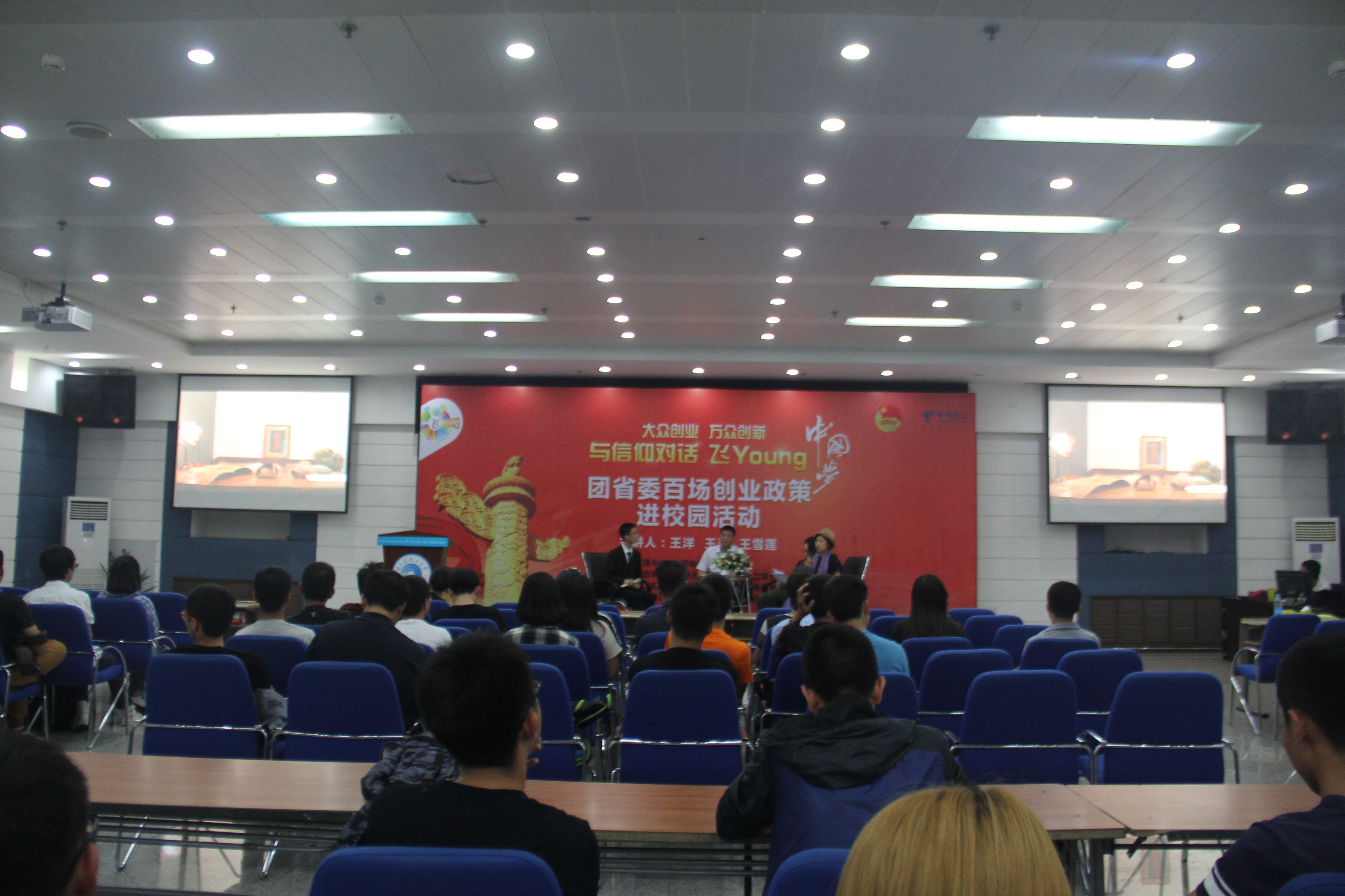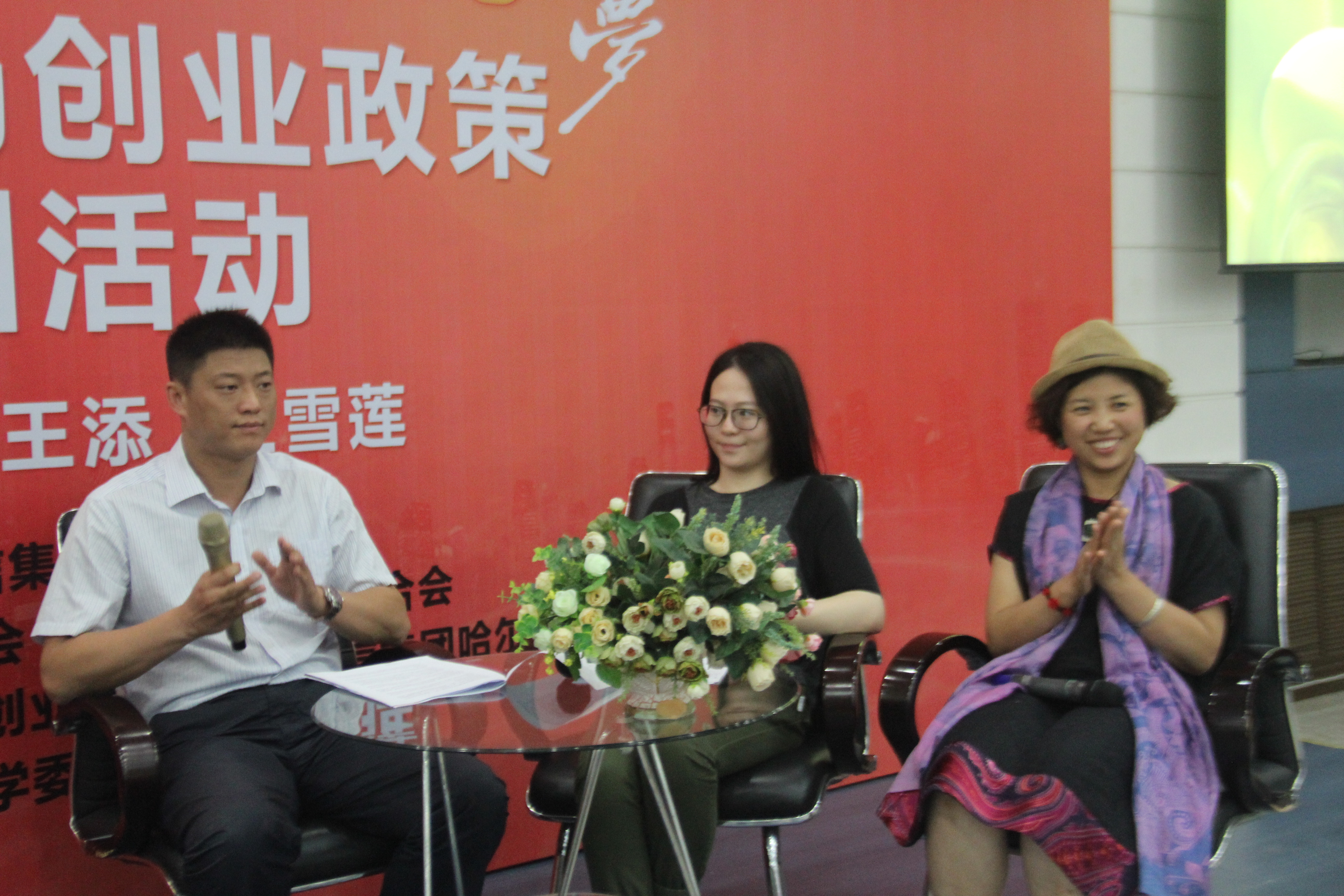 6月24日,由团中央、中国电信集团主办,团省委、省学联、省大学生创业创新联盟、电信哈尔滨分公司承办,校团委、三人行公司协办的“团省委百场创业政策进校园活动”在我校西区1号楼多功能厅隆重举办。到场嘉宾有省人社厅王洋老师、鹰歌·守艺人体验工坊CEO王雪莲老师、黑龙江省大学生创业贷款担保有限公司王添老师。