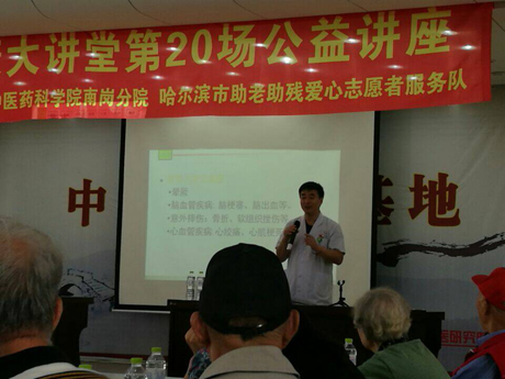 2016年9月10日,在世界急救日来临之际,哈尔滨理工大学材料学院青年志愿者协会携手哈尔滨市助老助残爱心志愿者服务队参加老年日报和黑龙江省中医药科学院南岗区分院在黑龙江省中医药研究院会议室联合举办的健康大讲堂第20场公益讲座。