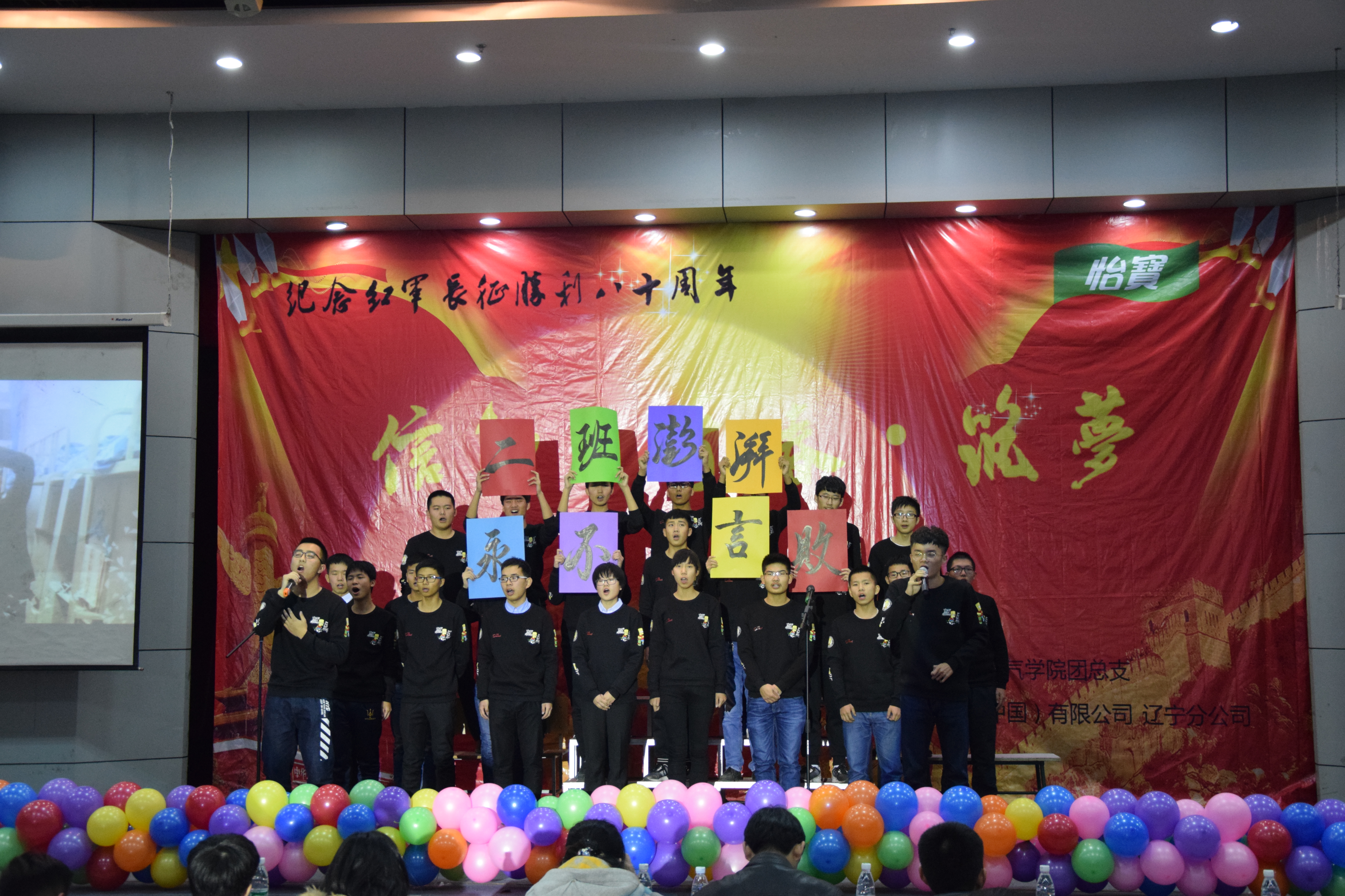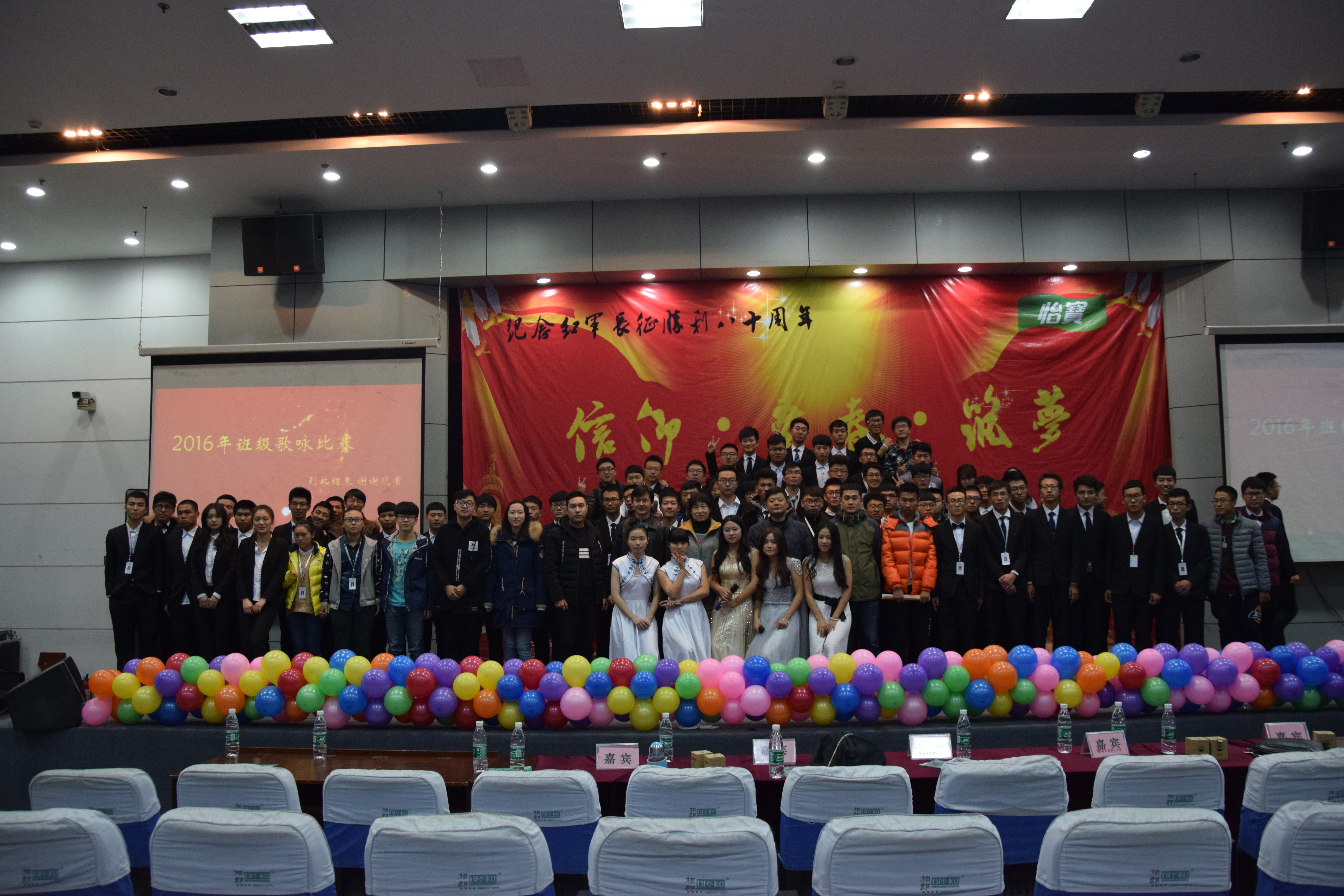 本次新生班级歌咏比赛分三个篇章:再回首,昨天已远走;在路上,大学即青春;争前程,成就永无疆。大学生们齐唱《仰望星空》、《最初的梦想》、《奔跑》、《我相信》、《相亲相爱一家人》、《明天会更好》、《我的未来不是梦》、《真心英雄》等一曲曲大学生喜闻乐见的歌曲,这些歌曲中蕴含着强烈的家国情感、激发个人正能量、凝聚班级力量、团结就是力量、团结就是胜利、拼搏、进取、向上、希望、竞争和超越决胜等饱含精神感召力量的时代精神,这些精神是长征精神的时代体现。经过紧张激烈的比赛,电气16-12班获一等奖;电气16-7班、电气16-14班、电气16-2班获二等奖;电信16-1班,电信16-2班,电信16-3班、电气16-5班、电气16-13班获三等奖;电气16-7班、 电气16-10班、电气16-8班、电气16-15班、电气16-1班、 电气16-3班、电气16-9班、电气16-6班获优胜奖;电气16-4班获最佳表演奖、电气16-11班获最佳人气奖。新生班级歌咏比赛在诗朗诵《颂歌献给党》中结束。