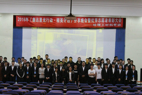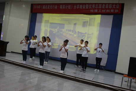 为响应星光行动,向社会送去温暖。2016年11月25日18:00整,哈尔滨理工大学材料学院青年志愿者协会在南区图书馆报告厅举办了以“志愿之心闪星光,公益之行筑梦想”为主题的星光行动公益分享晚会暨优秀志愿者表彰大会。材料青协星光行动项目专业指导教师张笑瑞以及材料学院的全体辅导员老师受邀出席了本次晚会。
