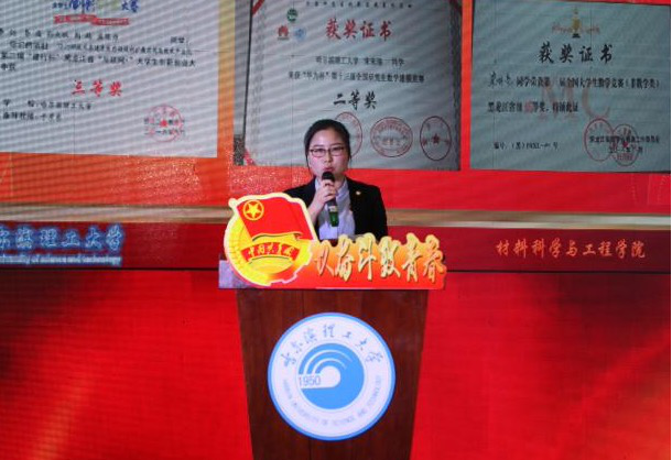在表彰大会上,荣获“五四红旗团总支”的材料学院团总支书记武翠、荣获“共青团工作先进个人”的研究生学院团总支书记颜廷亮,分别代表获奖集体及个人从团总支自身建设、思想引领,成长服务,素质拓展,科技创新、校园文化建设以及个人共青团工作等方面进行分享发言。期间,各与会领导分别为“五四红旗团总支”、“共青团工作先进个人”、“五四红旗团支部”、“十佳团支书”、 “最美青工”等颁奖。