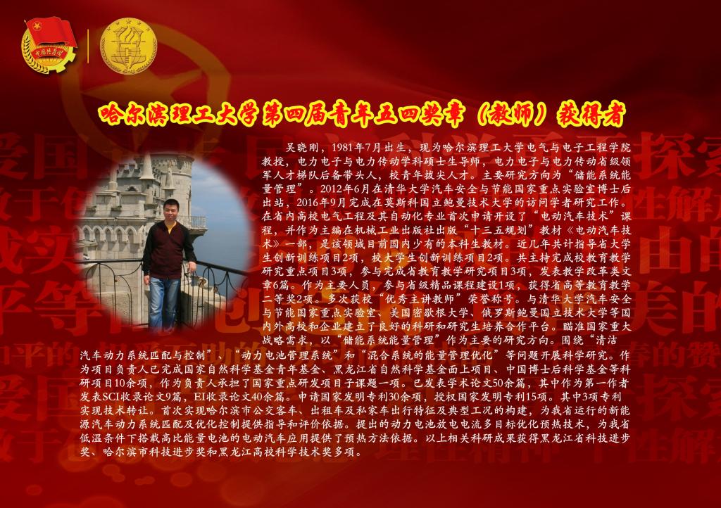 哈尔滨理工大学第四届青年五四奖章(教师)获得者