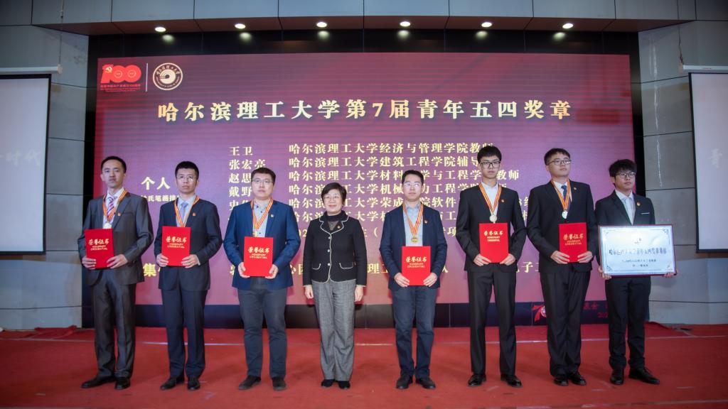 校党委副书记陆岩为第7届“哈尔滨理工大学青年五四奖章(集体)”颁奖