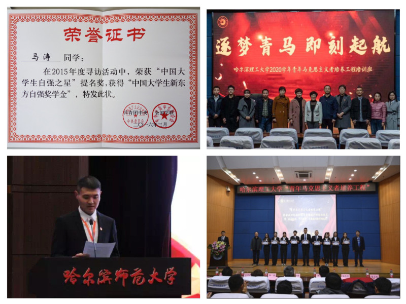 高扬旗帜,构建青马工程三级培育体系。以“理工骄子”为依托,构建“校-院-班”三级培养体系。选送了毕轩、韩陆等8名优秀学生骨干参加黑龙江省“青年马克思主义者培养工程”暨大学生骨干培训班,4名学生成功获评“中国大学生自强之星”荣誉称号、2名学生荣获提名奖。全方位强化团员青年理论学习,做政治素质高、专业能力强、有创新精神的青年马克思主义者。