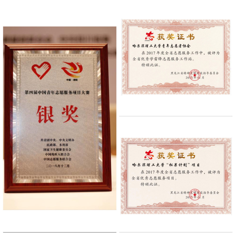 发扬志愿服务精神,传递向上向善力量。建立校、院两级青年志愿者协会,搭建志愿服务项目基地,拓展志愿服务项目类型,“志愿红”和“理工蓝”已成为靓丽的理工志愿服务名片。五年来,我校累计注册志愿者万余名,各种志愿服务队伍15余支,开展志愿服务活动约20000人次,总志愿服务时长10万余小时。2人荣获黑龙江省十大杰出青年志愿者,哈尔滨理工大学研究生支教团荣获全国青年志愿者优秀组织奖,2支团队荣获中国青年志愿服务项目大赛银奖,1支团队荣获黑龙江省志愿服务大赛金奖、4支团队荣获大赛银奖、1支团队荣获大赛铜奖,我校青年志愿者协会荣获全省志愿服务工作学雷锋工作站。研究生支教团以青春接力奉献,彰显理工青年使命担当,研究生支教团成员先后获评全国自强之星提名奖、优秀共青团团员等荣誉称号。