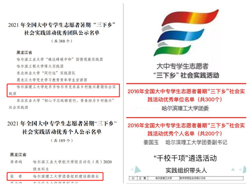 立足专业服务社会,提升社会实践育人成效。我校将大学生暑期社会实践活动纳入“第二课堂成绩单”,保证实践活动的制度化、常态化,参与社会实践的学生逐年递增。近五年来,学校团委被评为全国大中专学生志愿者暑期“三下乡”社会实践活动优秀单位,6支小分队被评为全国社会实践重点小分队,3人被评为全国社会实践活动优秀个人。近30个团队和个人获团省委表彰。广泛开拓资源,开展“扬帆计划”实习活动,先后与省级机关、海关、社科联、黑龙江广播电视台等机构企业实现合作实习培养,累计为21名学生提供实习机会。
